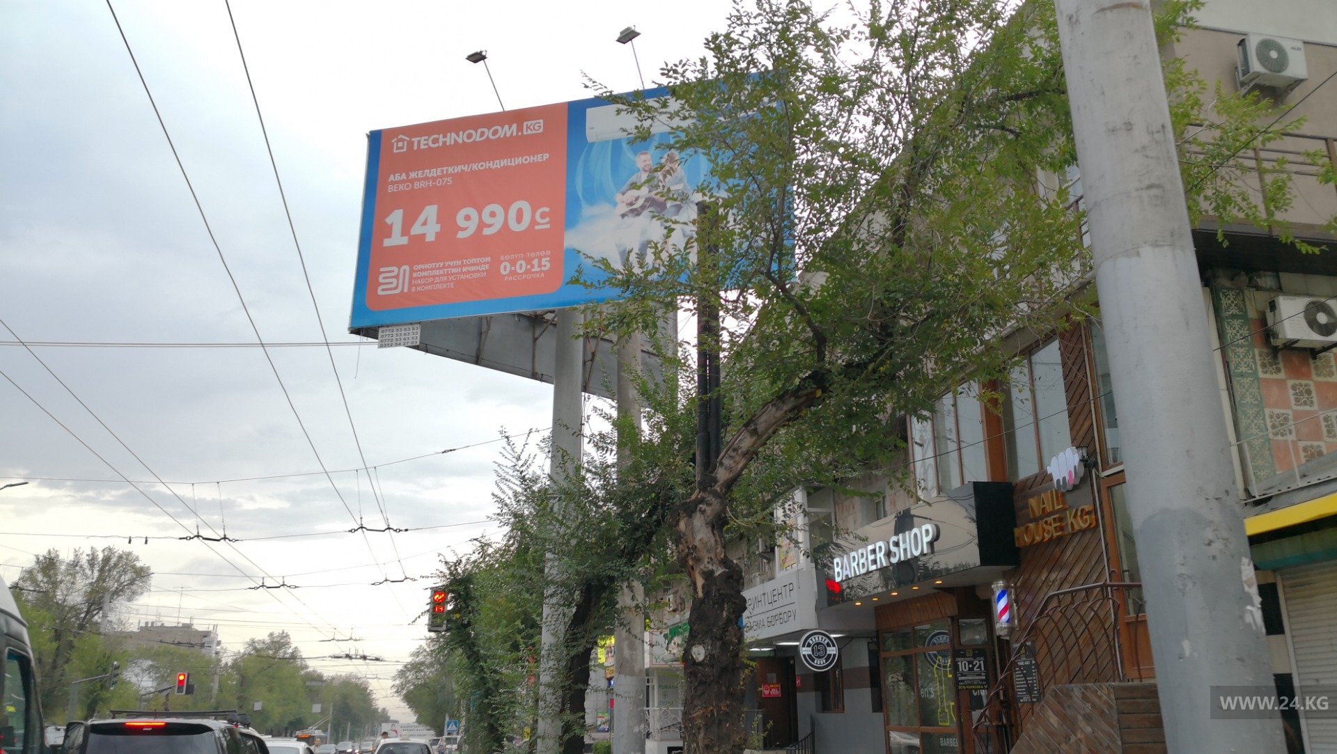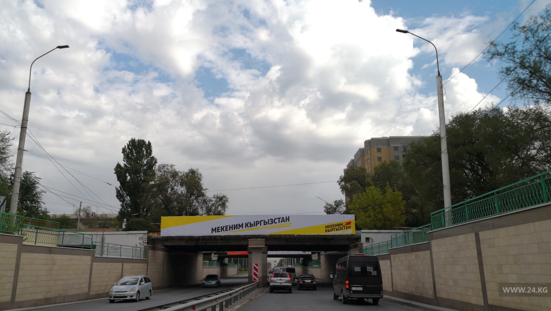 Партии «Мекеним Кыргызстан» и «Бир Бол» разместили свою рекламу тоже на мосту по Льва Толстого. Вчера эти рекламные площадки пустовали, а сегодня здесь уже размещена агитация.