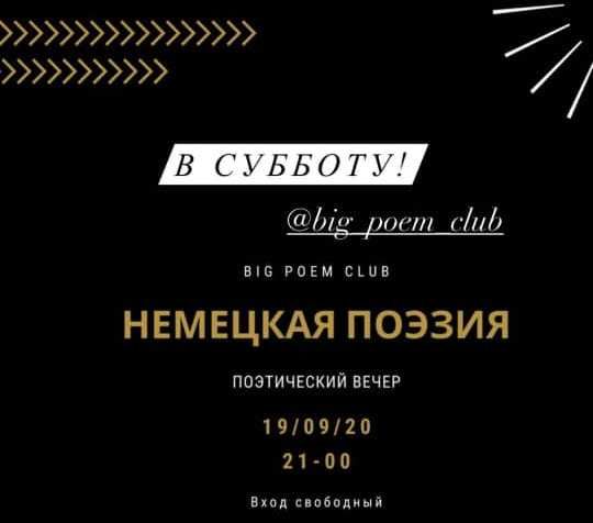 Big Poem Club познакомит с немецкой поэзией. По традиции будет и «открытый микрофон» после основной программы.