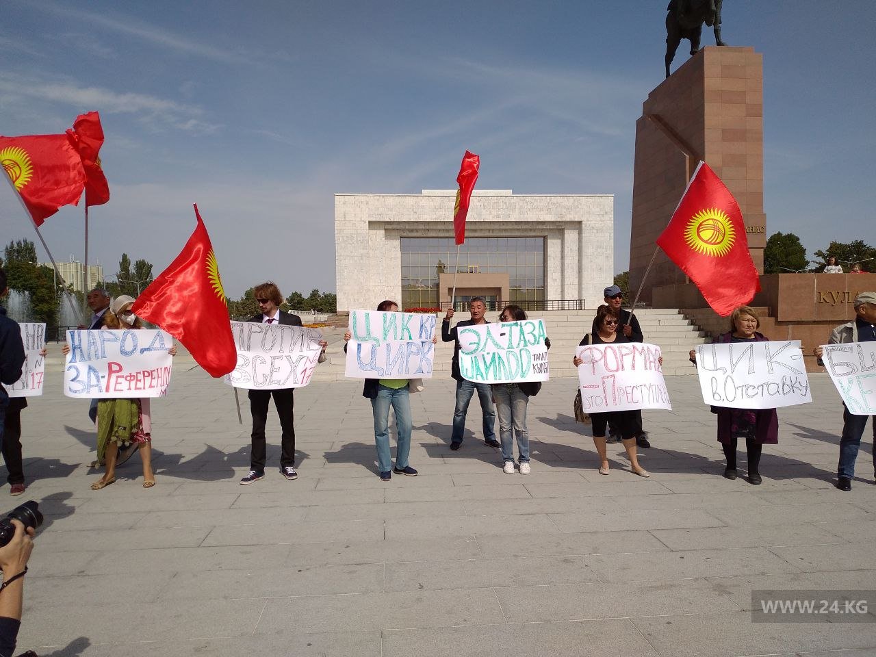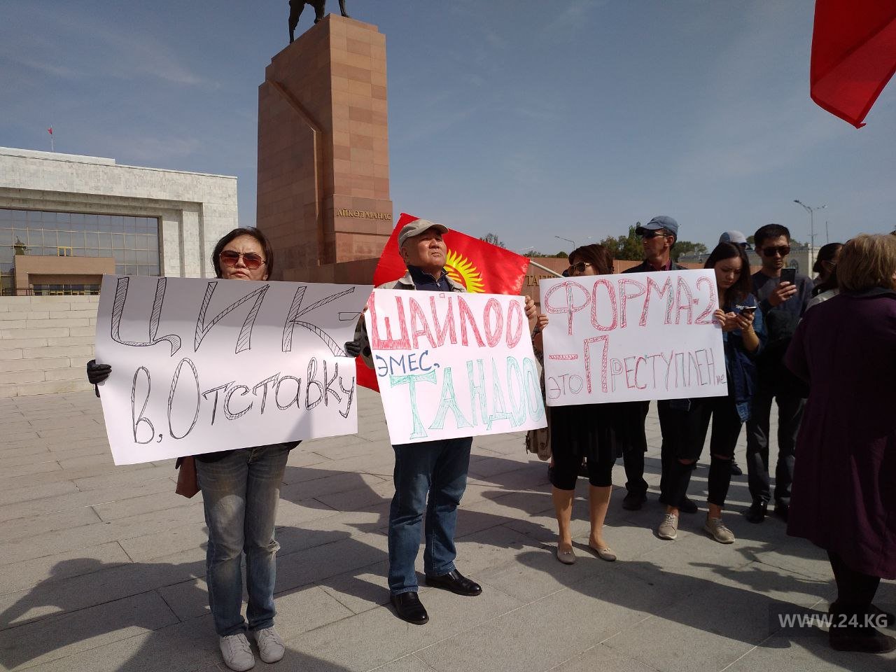В Бишкеке на площади Ала-Тоо проходит митинг с лозунгами «Против всех». На акцию пришли около 15 активистов, включая правозащитницу Токтайым Уметалиеву.