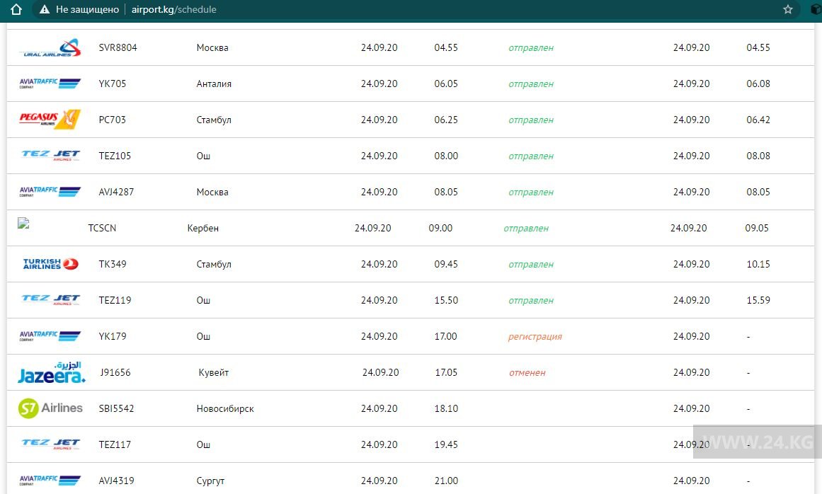Тому свидетельство — и расписание полетов на официальном сайте аэропорта «Манас», которое показывает, что, действительно, авиакомпании осуществляют больше рейсов, чем официально заявлено. Причем летают не только в Москву и Санкт-Петербург, но и в другие города России.