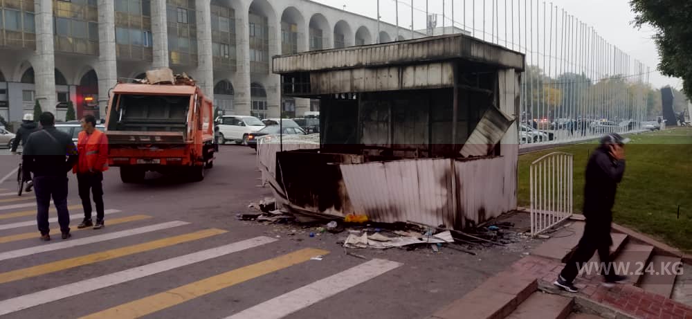 Неизвестные сожгли также будку сотрудников милиции, которая установлена на пересечении проспекта Чуй и улицы Орозбекова.
