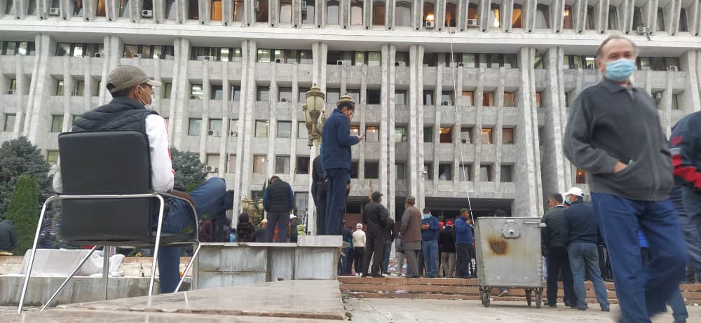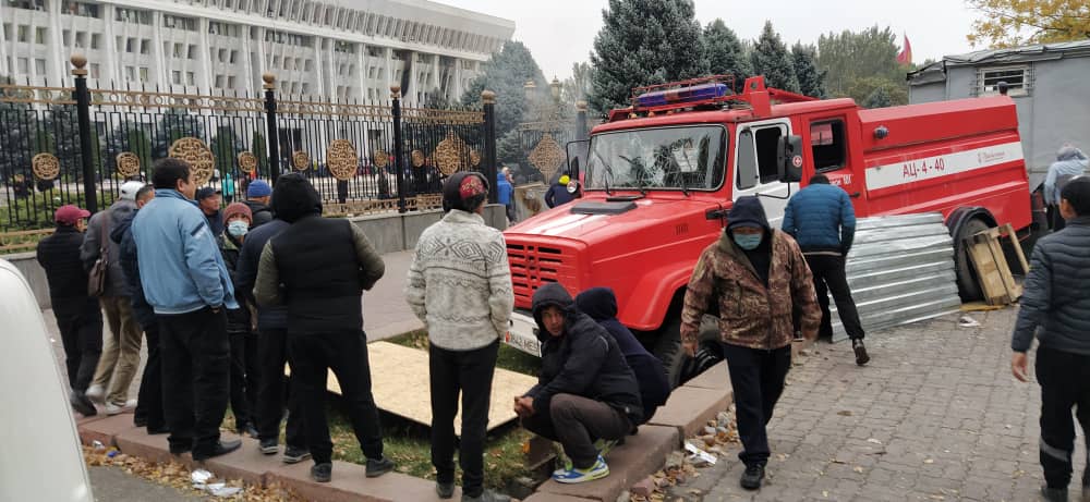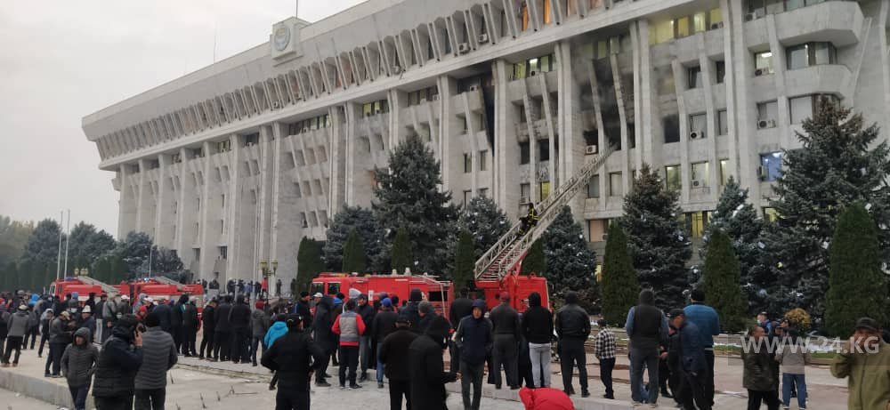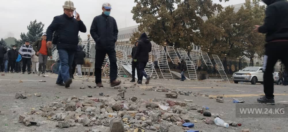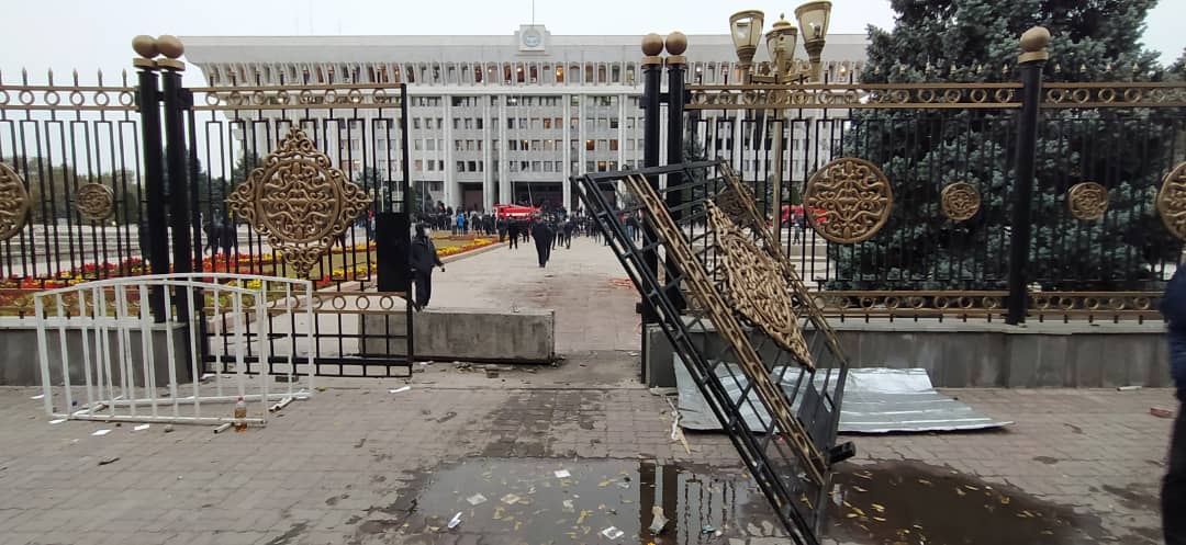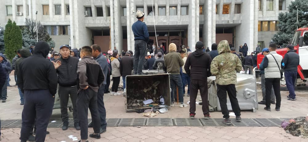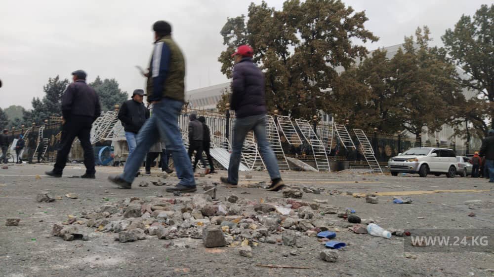 Ночь на 6 октября в Бишкеке выдалась неспокойной. Сторонники не прошедших в парламент партий сначала вышли на митинг в знак протеста. Вечером 5 октября начались беспорядки. Участники акции несколько раз пытались взять штурмом «Белый дом». После семи часов столкновений с силовиками им это удалось.