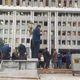 На площади и на подходах к ней стоят сожженные машины, а также техника городских служб, разбитая митингующими.