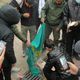 На площади валяются отколотые куски брусчатки и камни, которыми протестующие кидались в сотрудников правоохранительных органов.