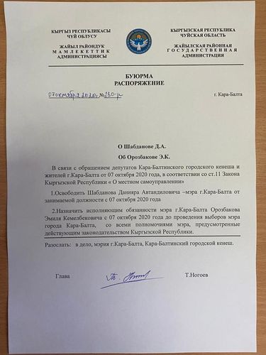 Исполняющим обязанности градоначальника назначен Эмиль Орозбаков.