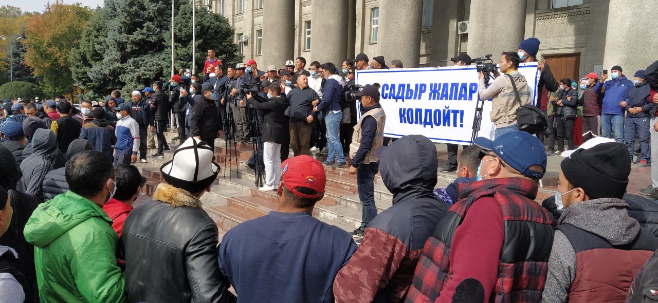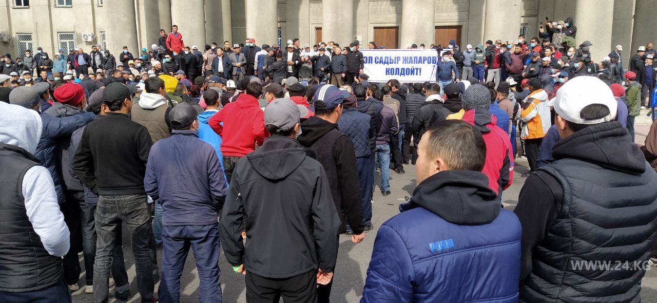 У здания Дома правительства на данный момент собралось около 1,5 тысячи митингующих. Они скандируют имя своего лидера, призывая Жогорку Кенеш ускориться с назначением Садыра Жапарова на пост и. о. премьер-министра Кыргызстана.