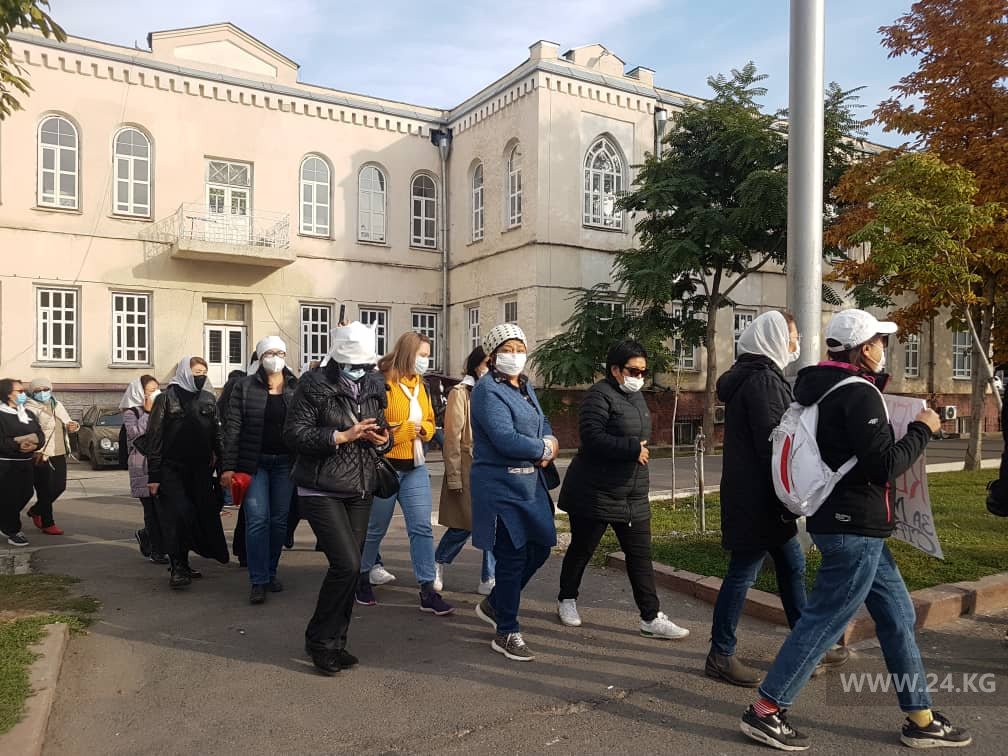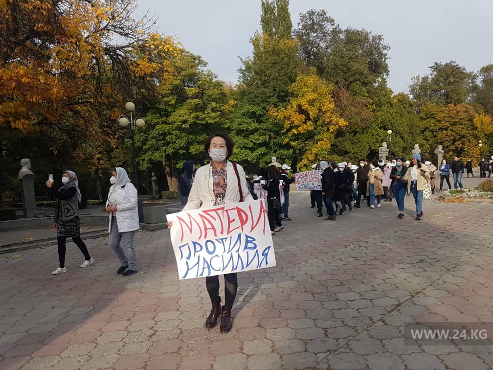 Матери и дочери Кыргызстана вышли на мирный марш «Белый платок» в память о погибшем 5 октября 19-летнем Алтынбек уулу Умутбеке.