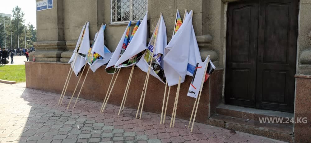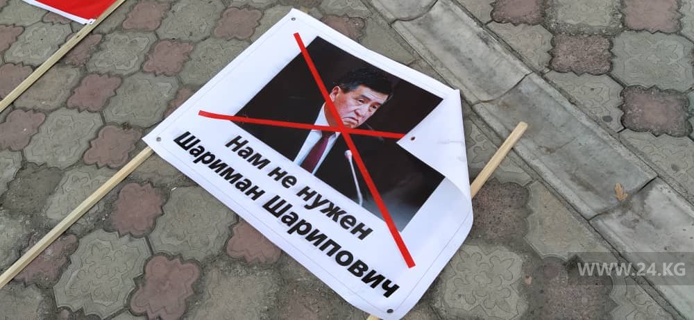 Нам не нужен Шариман Шарипович. На митинг Садыра Жапарова привезли транспаранты