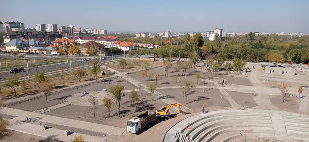 В Бишкеке продолжается строительство парка «Ынтымак-2»: там будет большой фонтан, амфитеатр и прогулочные зоны. Об этом сообщили в мэрии столицы.