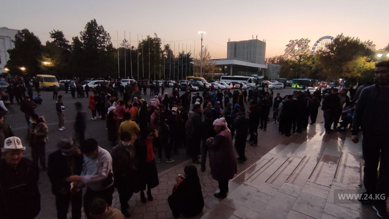 Протестующие приехали на автобусах и легковых авто из гостинцы «Иссык-Куль». Примерно 20 человек захватили рабочую машину МП «Тазалык» и приехали на ней.