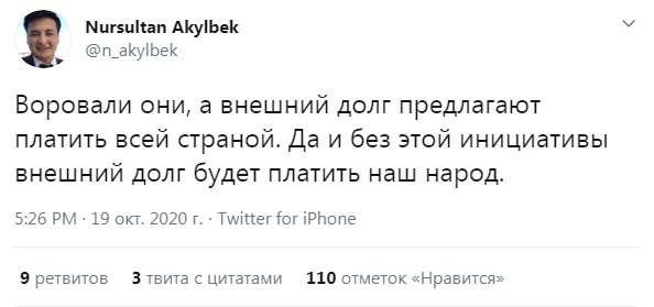 В 2018 году правительство во главе с Мухаммедкалыем Абылгазиевым предлагало открыть спецсчет для аккумулирования средств от желающих помогать государству. Большинство граждан тогда предложили погасить госдолг имуществом коррупционеров.