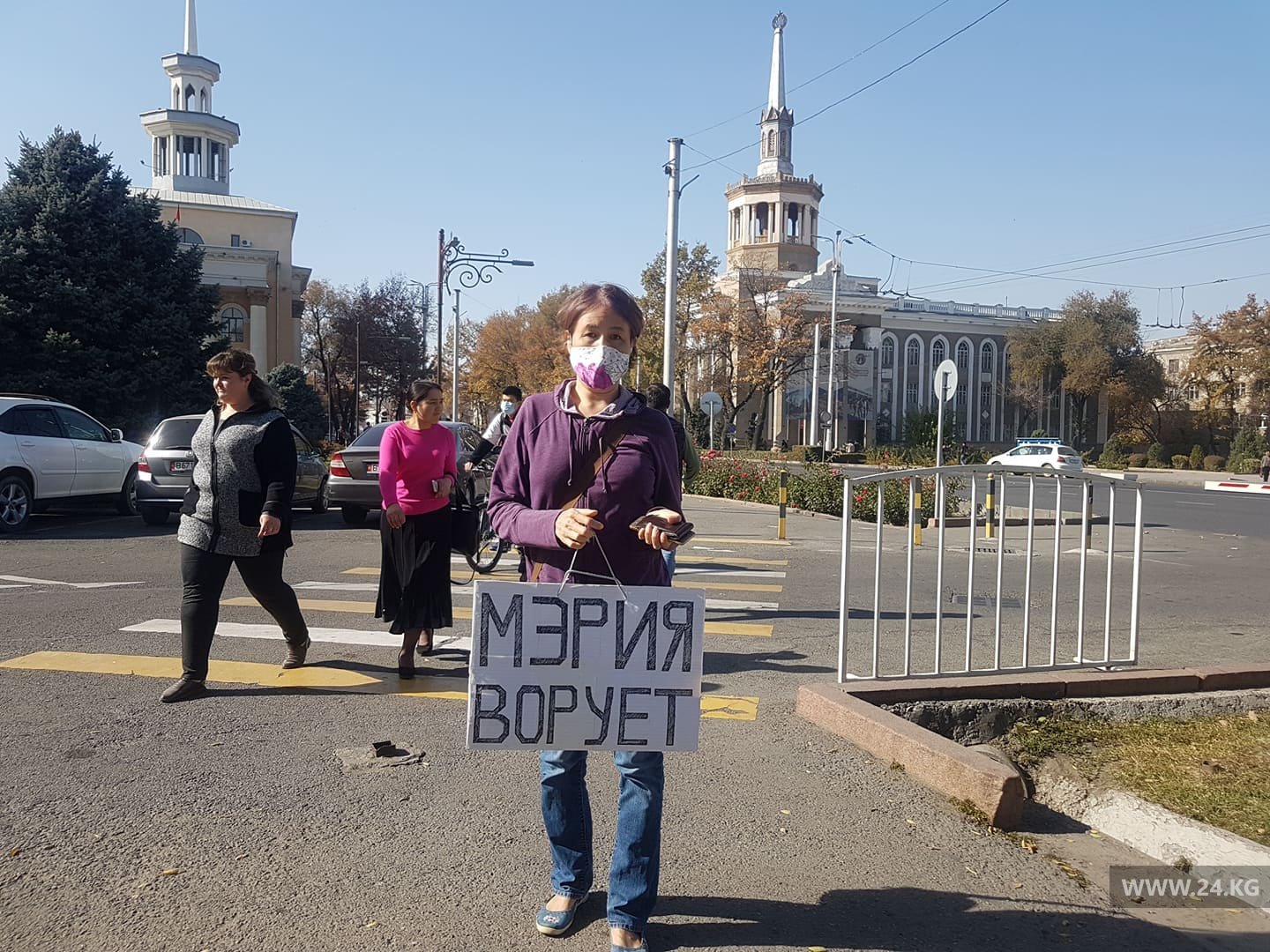 «Несколько лет я писала заявления на электронную почту, в соцсетях, приходила в мэрию. Никто не реагировал. Но стоило мне один раз выйти сюда, и сотрудники со всех служб прибежали. Несколько лет не реагировали, а сейчас все заинтересовались», — говорит Чолпонай Жолчуева.