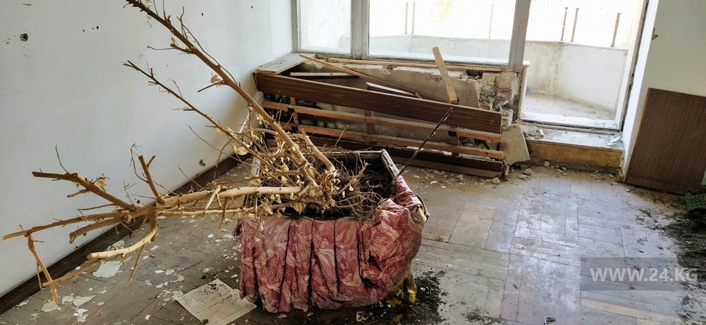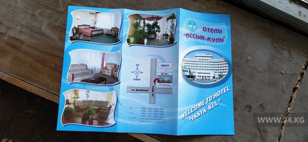 Некоторые номера гостиницы буквально завалены разобранной и растасканной бытовой техникой. На подоконнике одной из комнат аккуратной стопкой лежат удивительно сохранившиеся артефакты — рекламные буклеты «Иссык-Куля».