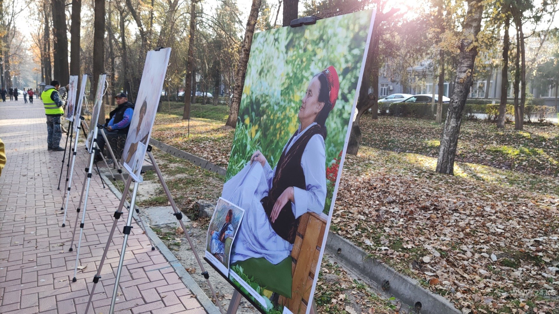 В Бишкеке на бульваре Эркиндик состоялась выставка картин, на которых сотрудники Бишкекзеленхоза предстали в образах известных персонажей работ отечественных художников.