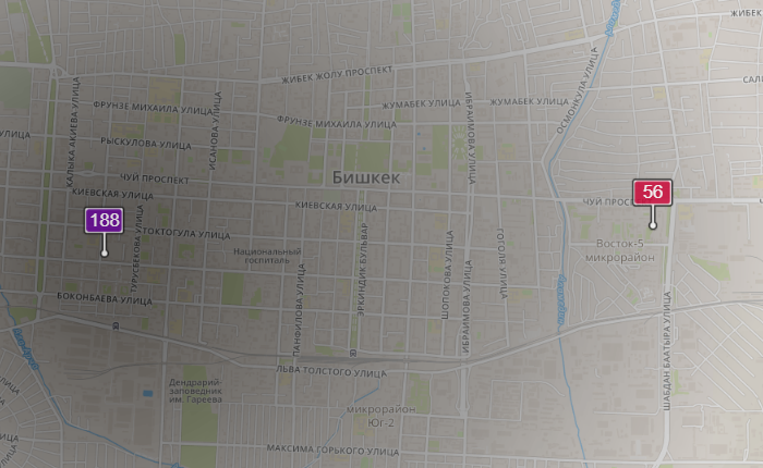 - в районе улиц Московской/Уметалиева. Уровень загрязнения превышен в 4,61 раза: PM2.5 среднесуточный — 163 мкг/м³, на момент измерения — 188 мкг/м³;