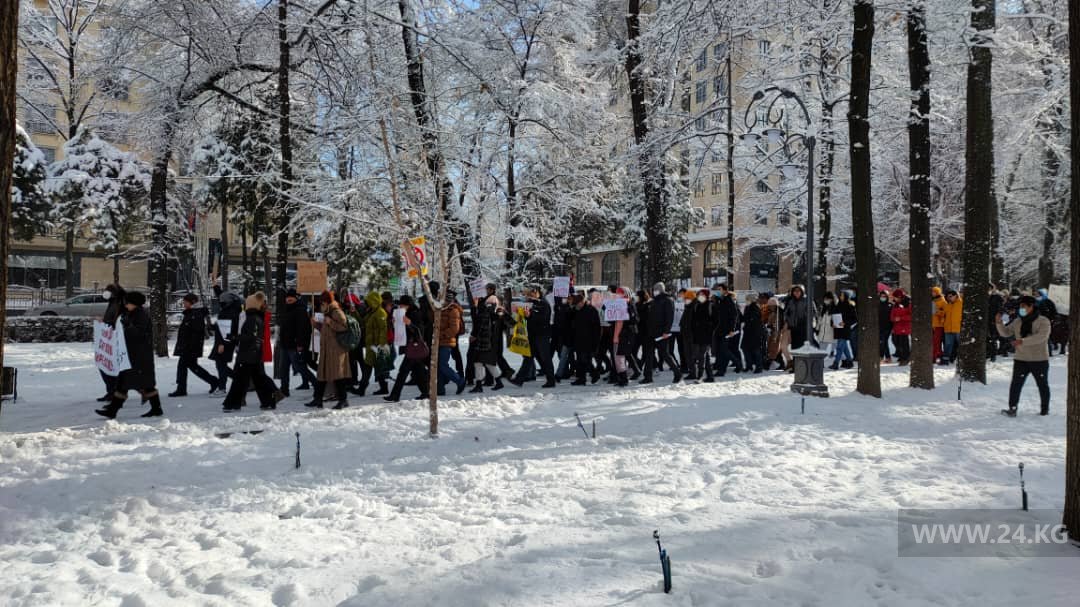 Участники марша отправились на площадь Ала-Тоо.