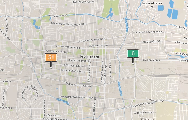 - в районе улиц Московской/Уметалиева. Уровень загрязнения превышен в 3,06 раза: PM2.5 среднесуточный — 107 мкг/м³, на момент измерения — 51 мкг/м³;