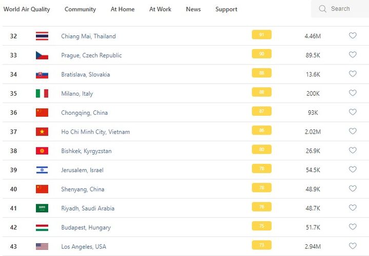 В рейтинге крупнейших городов мира по качеству воздуха World Air Quality на 8.30 Бишкек опустился на 38-е место.