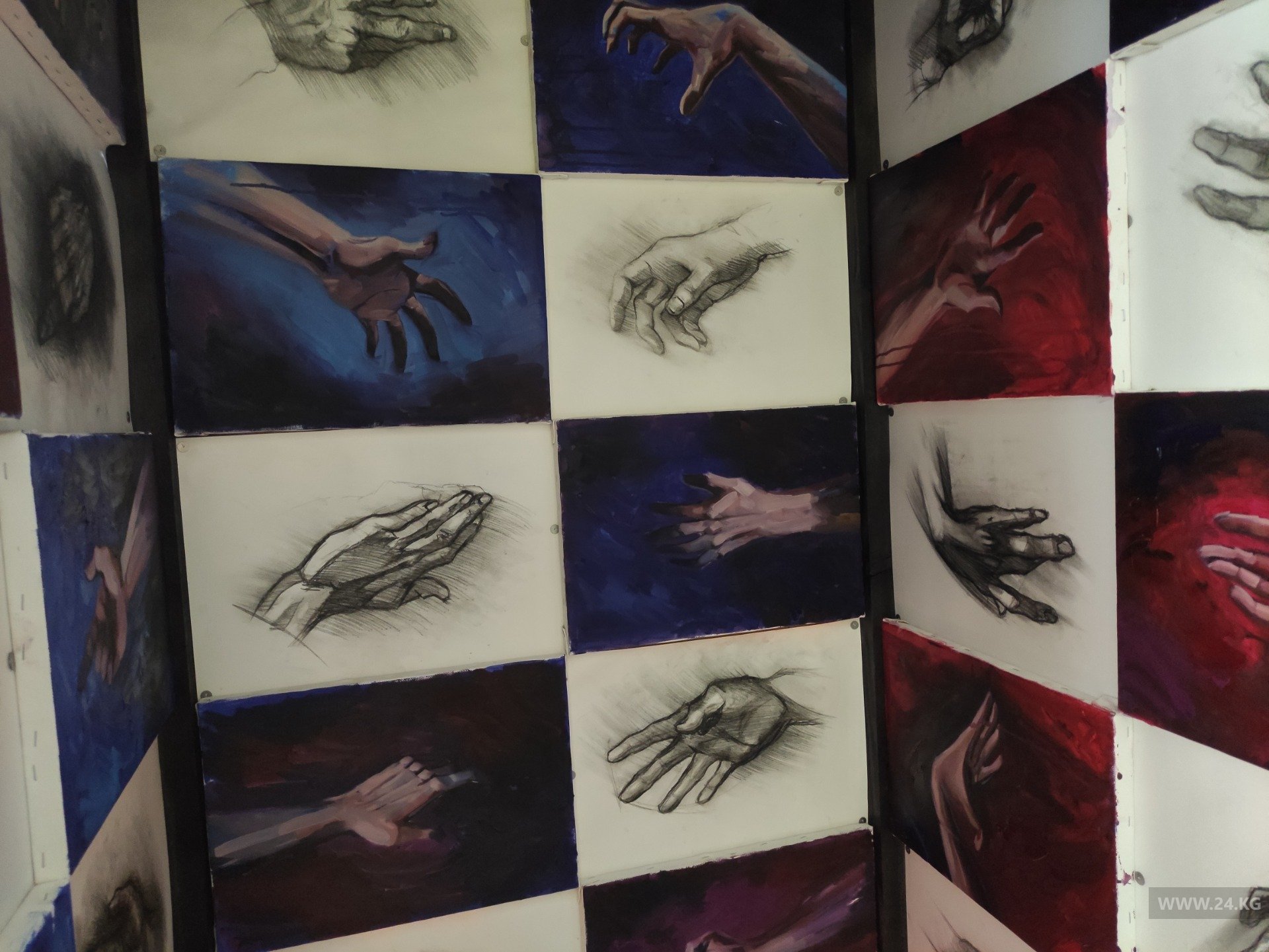 «Именно 40 мужских рук, потому что так сложилось, что в нашей культуре 40 — это сакральное число. Было 40 кыргызских племен, 40 лучей солнца на нашем флаге, движение «Кырк чоро». После марша 8 марта, когда меня задержали, там были представители этого движения, но они были не с нами, а с правоохранительными органами. Это сильно повлияло на нас. Сестренка начала рисовать руки, а затем пришла идея создать целую инсталляцию. Во время работы над ней мы повторно это все переживали, поэтому так долго ее делали: начали в апреле и закончили только в ноябре», — рассказывает Айзат Русланова.