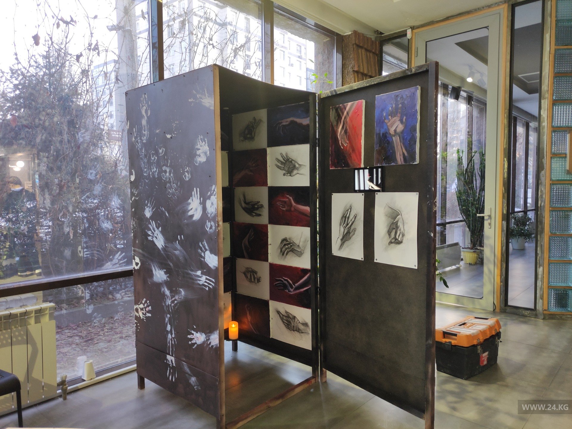 По словам Айзат Руслановой, в маленькой черной комнате можно увидеть 40 нарисованных мужских рук. Они выполнены масляными красками. Если приглядеться, руки изображены в движении.