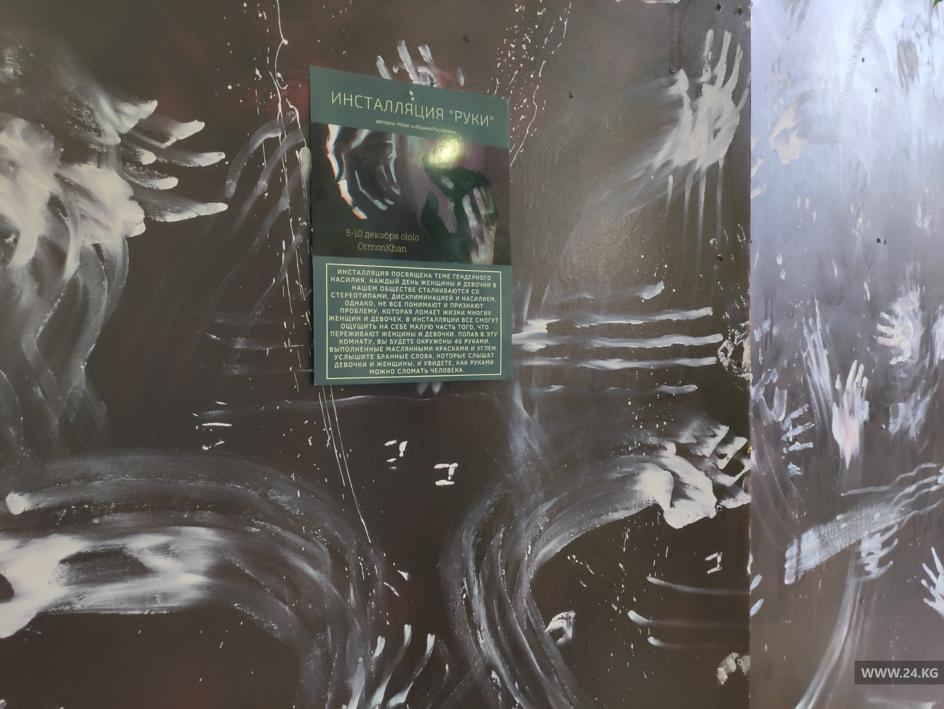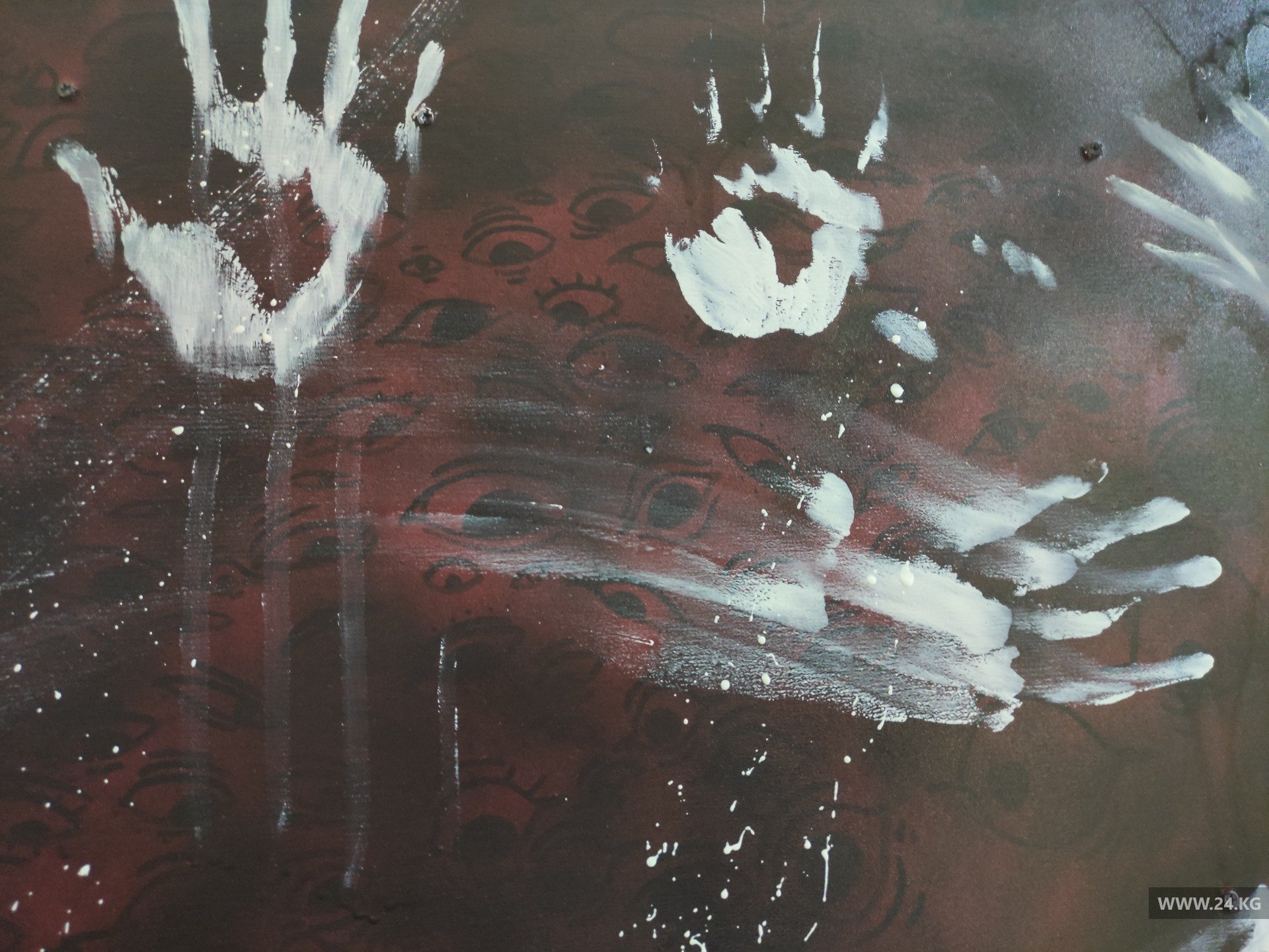 Снаружи комнаты тоже изображены руки. Это изображение рук женщин, которые стали жертвами домашнего насилия. По словам активистки, приглядевшись, рядом с этими руками можно заметить глаза, которые почти не видно.