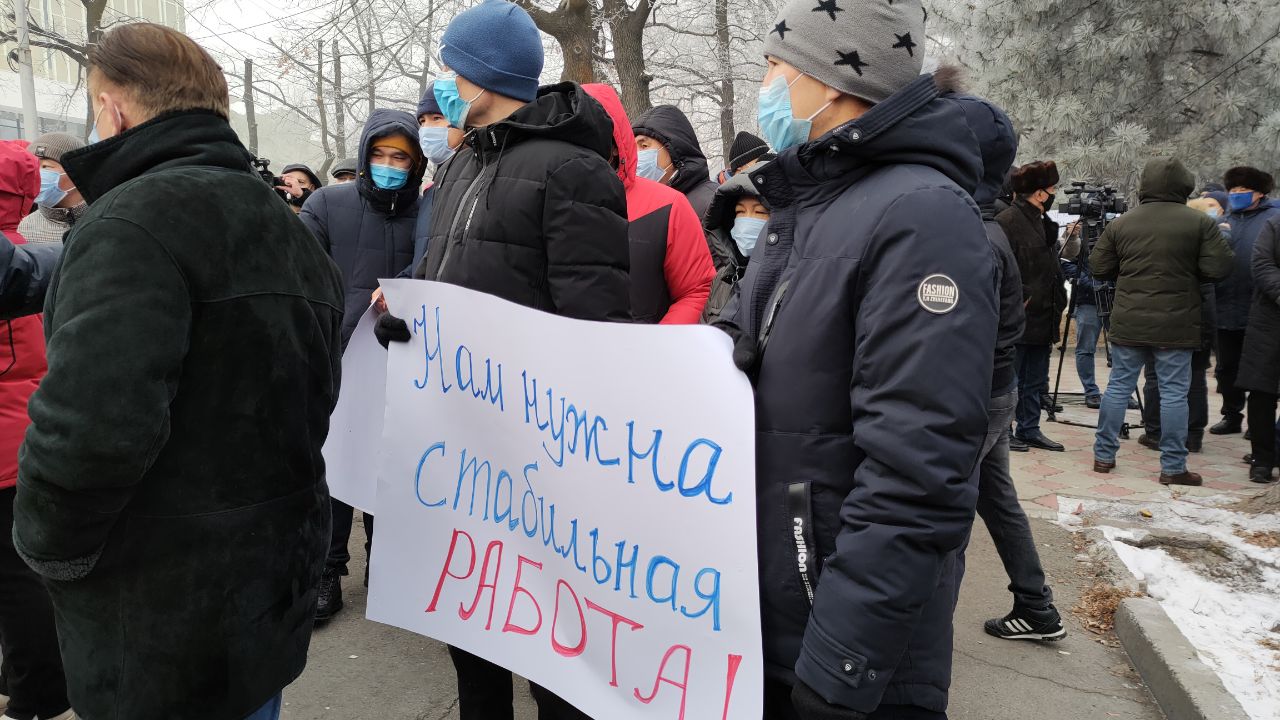 Возле Дома правительства митингуют работники горнодобывающего комплекса «Бозымчак», расположенного в Джалал-Абадской области.