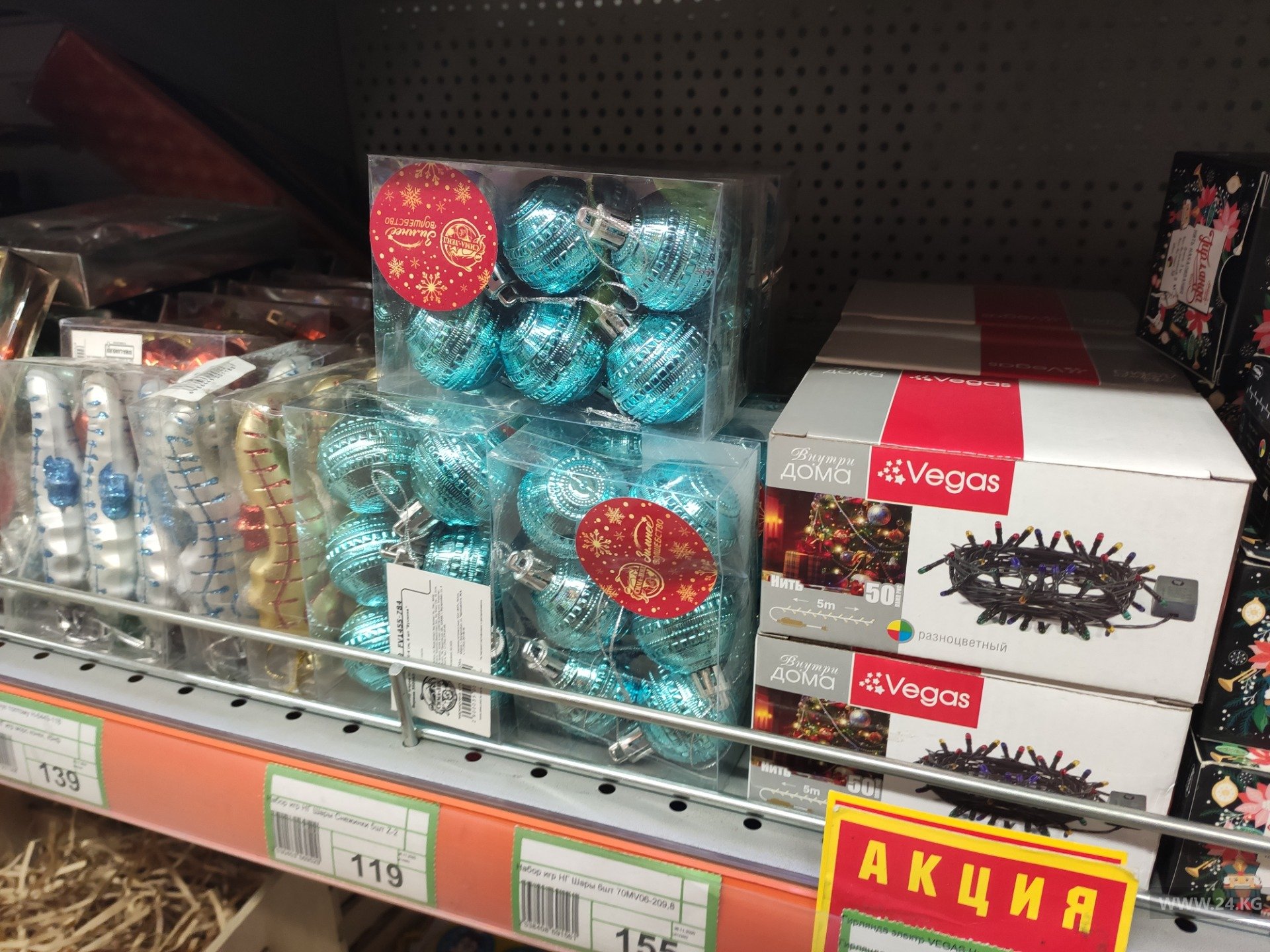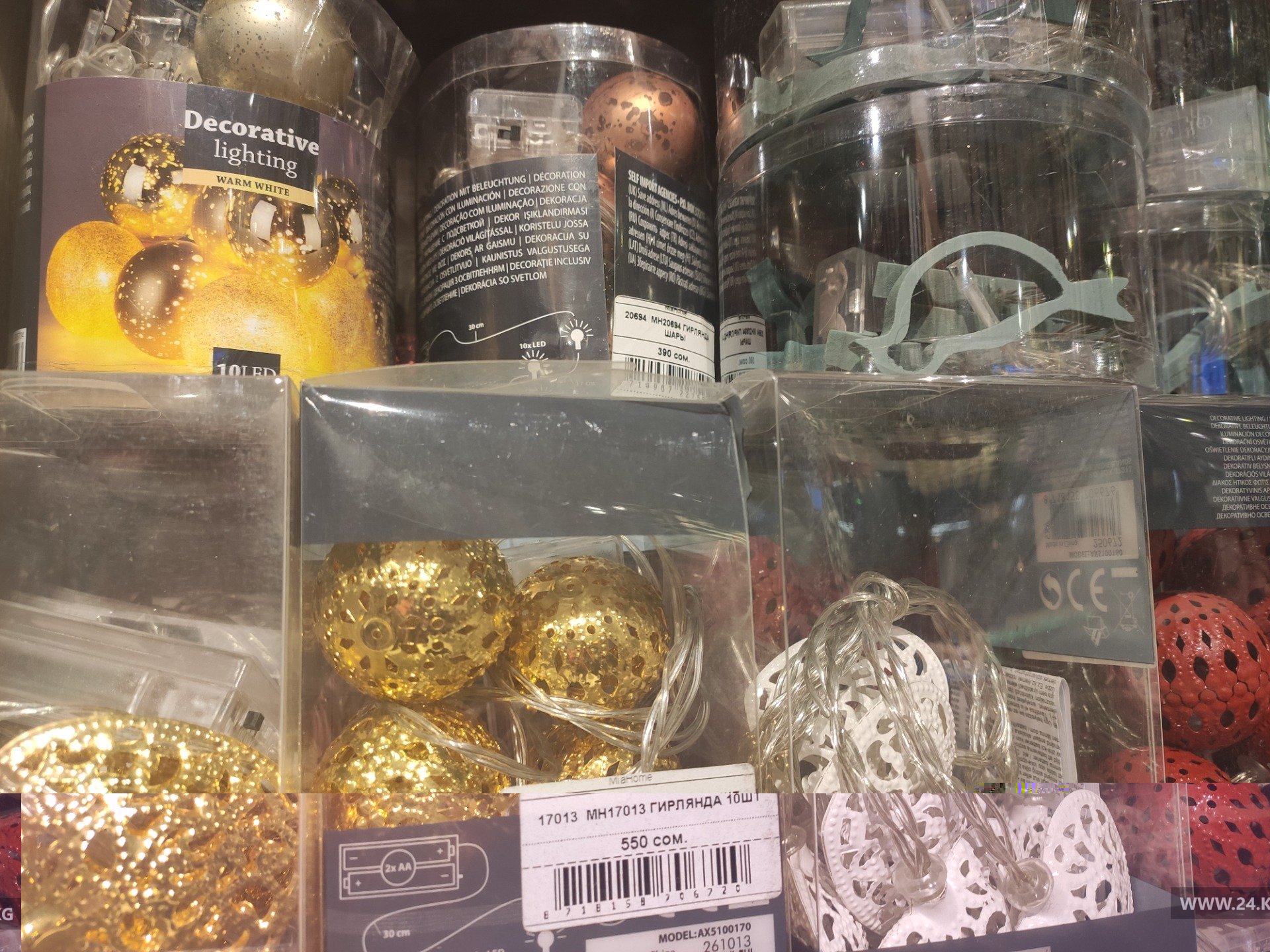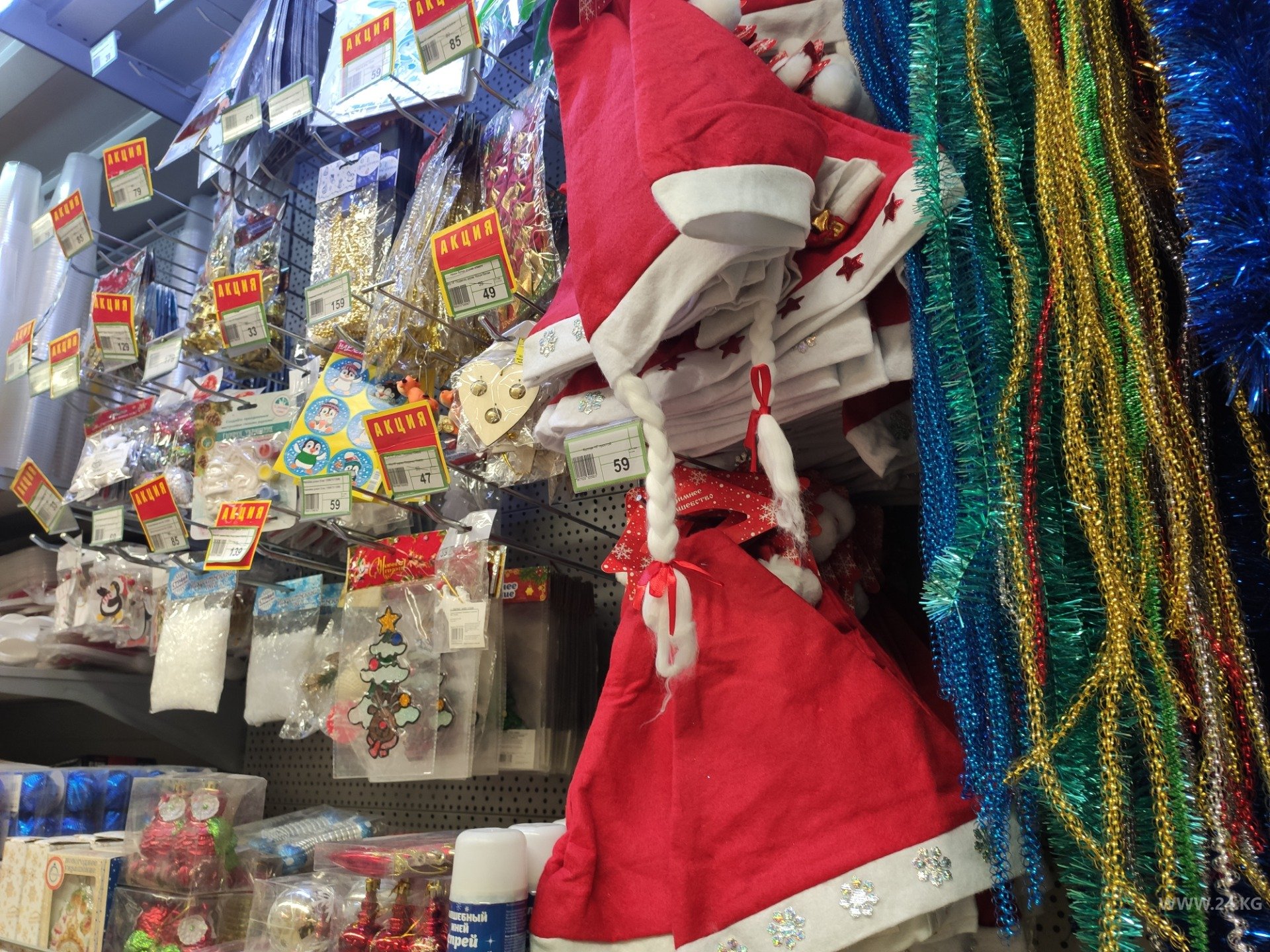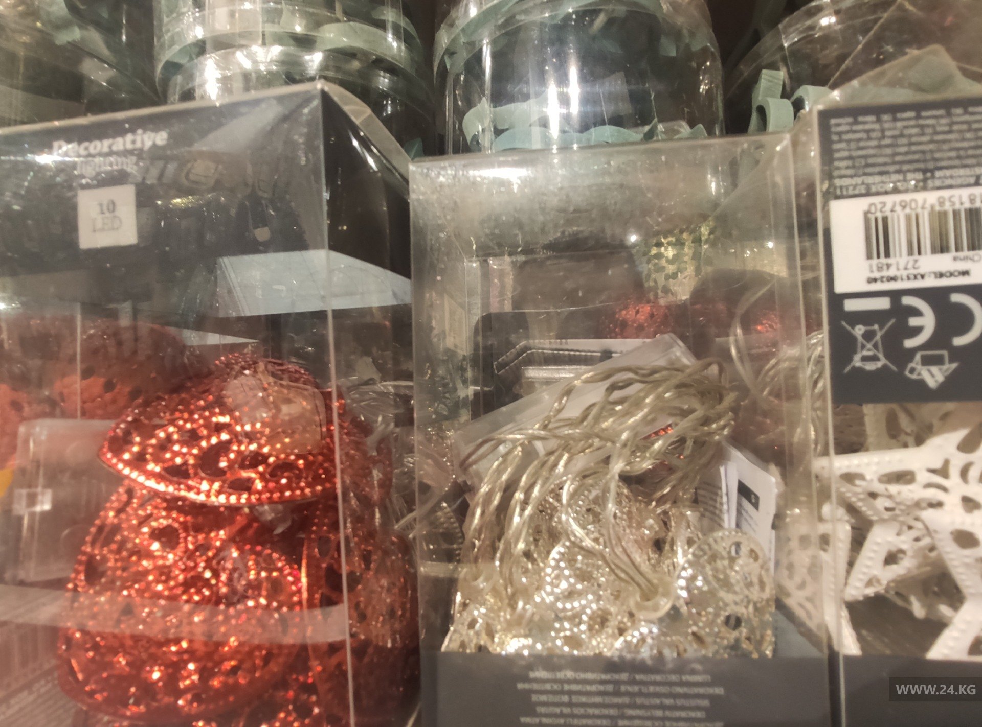 Новогоднюю мишуру сейчас продают на каждом углу. Вот где глаза разбегаются. Но и разбег цен тут тоже большой. Есть мишура и за 20-30 сомов, и за 150-200 сомов. Поэтому будьте предельно внимательны в магазине и читайте этикетки, чтобы на кассе не получить неприятный сюрприз.