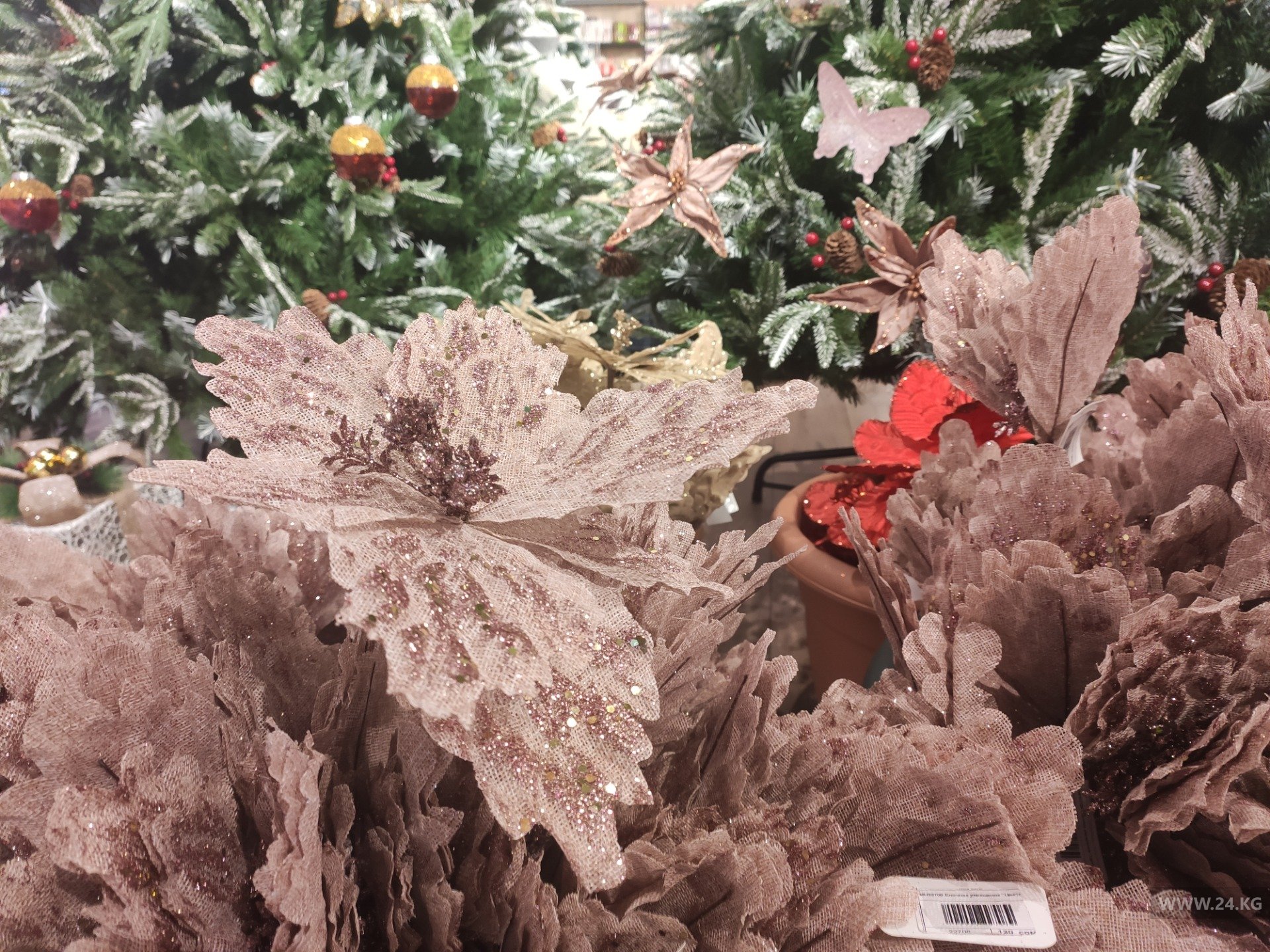 Еще для украшения елки подойдут всевозможные аксессуары: яркие ленты, бантики, цветы, снежинки, снеговики, бусины. Они стоят от 10 до 200-300 сомов. Елка с ними смотрится стильно и необычно.