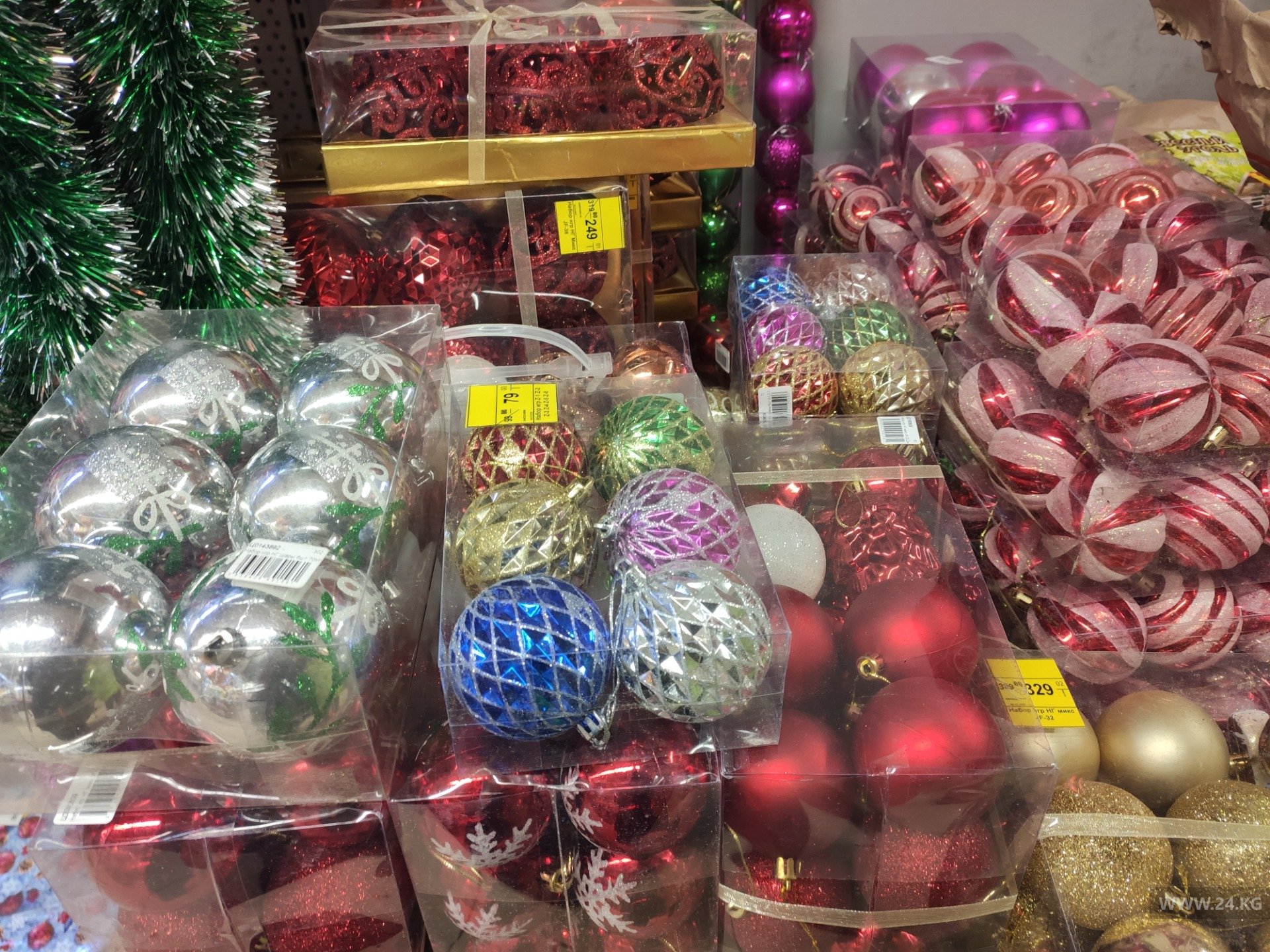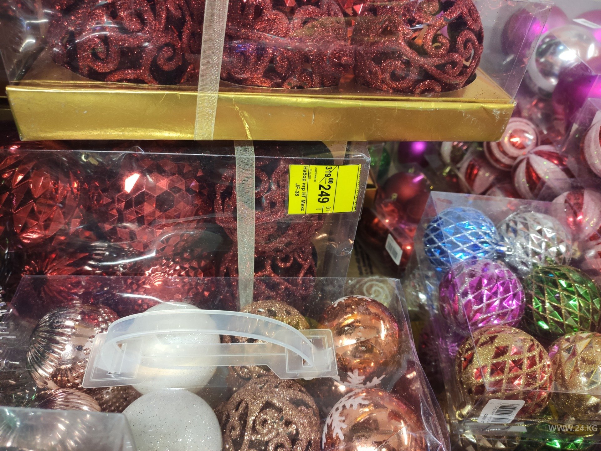 Цены на пластиковые шары немного выросли. На поштучные цены варьируются от 30 до 600-700 сомов, на наборы — от 80 сомов. Если вы точно знаете, какой будет ваша елка, стоит брать наборы. Это в итоге дешевле, и смотреться будет более стильно, чем множество разномастных шаров.