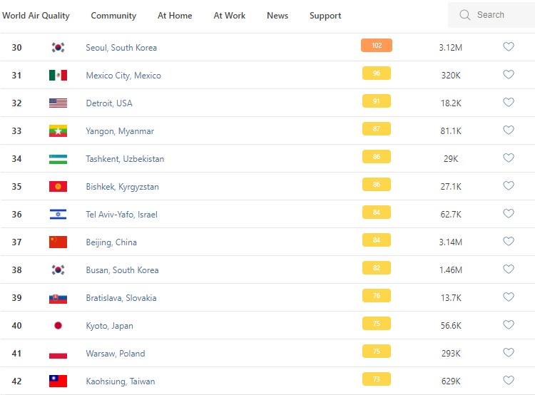В рейтинге крупнейших городов мира по качеству воздуха World Air Quality Бишкек на 8.30 опустился на 35-е место.