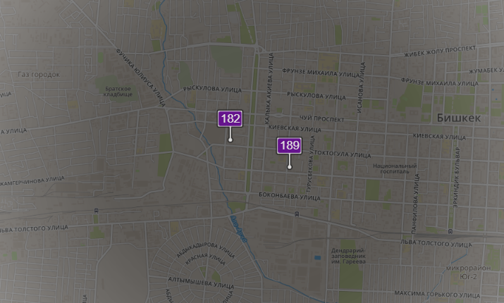 - в районе улиц Бейшеналиевой/Токтогула Уровень загрязнения превышен в 7,4 раза: PM2.5 среднесуточный — 259 мкг/м³, на момент измерения — 182 мкг/м³;