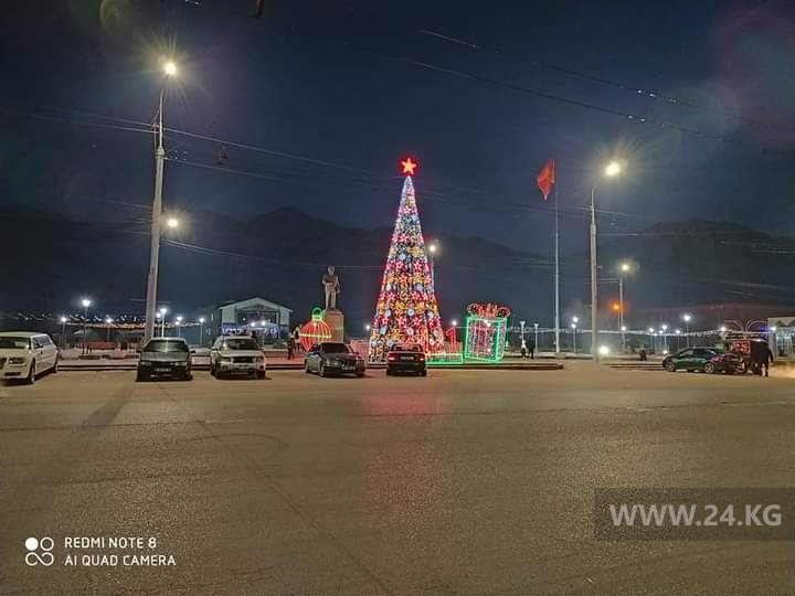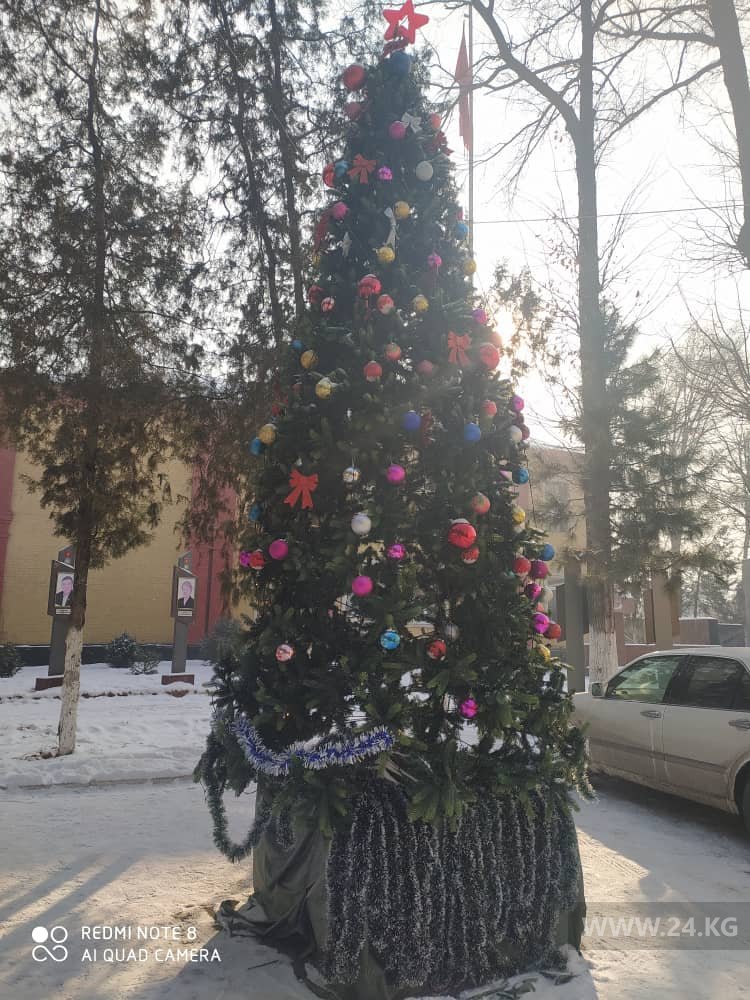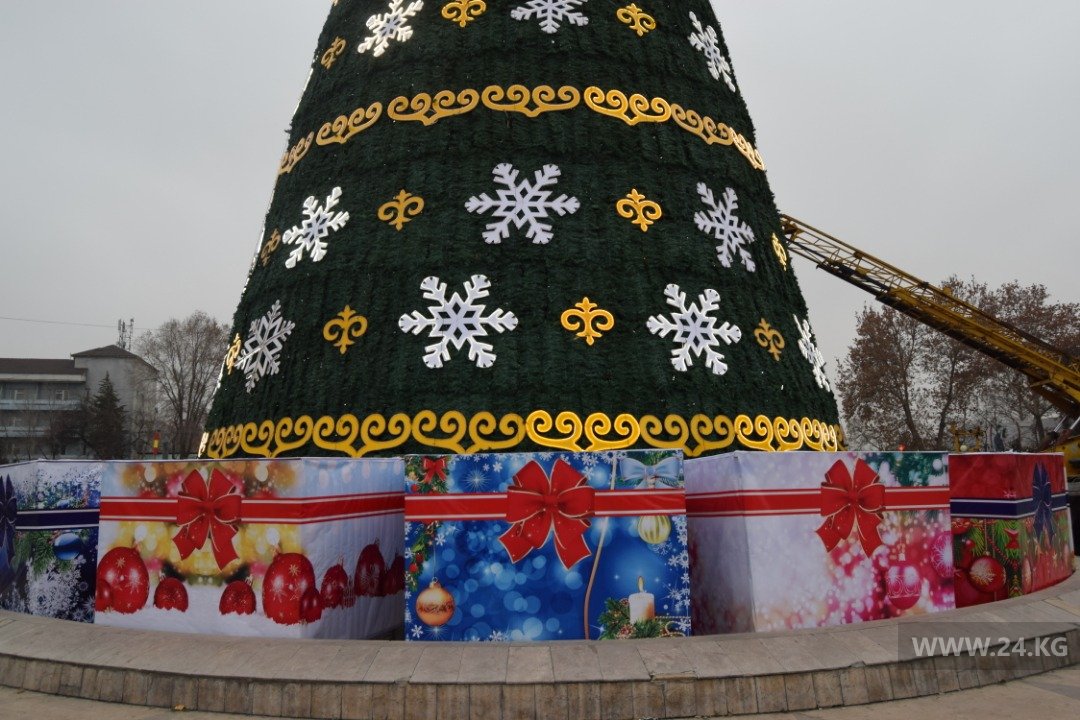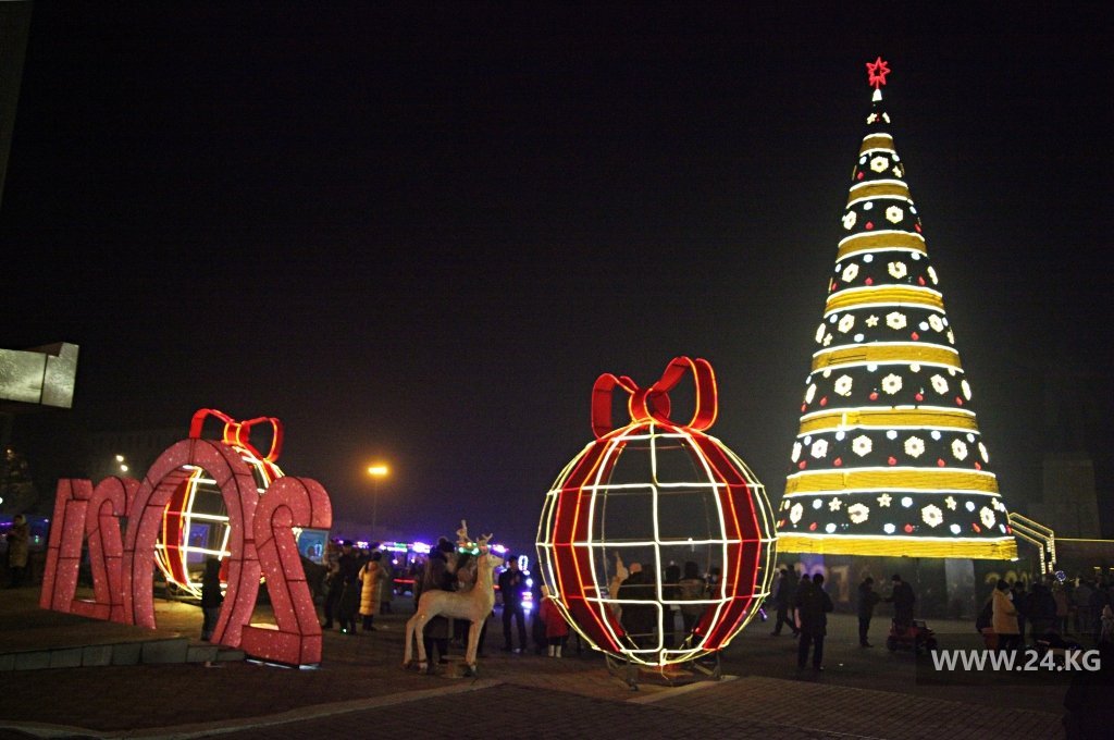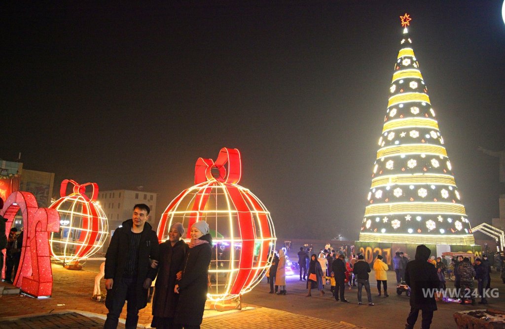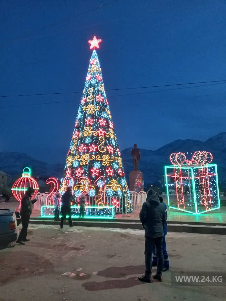 Поэтому, минуя кризис, из местного бюджета на новогоднюю красу выделили аж 600 тысяч сомов. Высота праздничного дерева на центральной площади составляет 11 метров. Улицы не украшали.