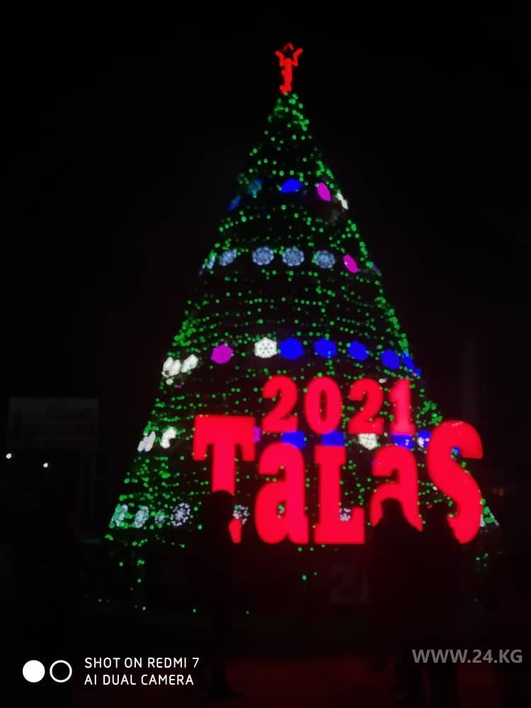 Мэрия Таласа для создания новогоднего настроения каждый год покупает живую елку высотой 14-16 метров.«Она более эффектная», — считает мэр города Айдар Джузубеков.