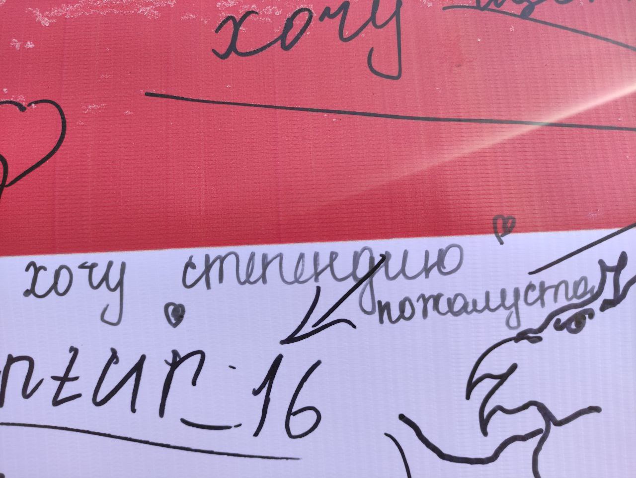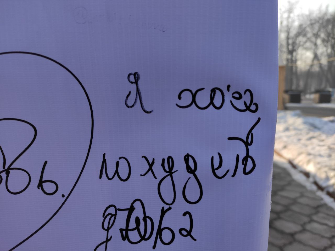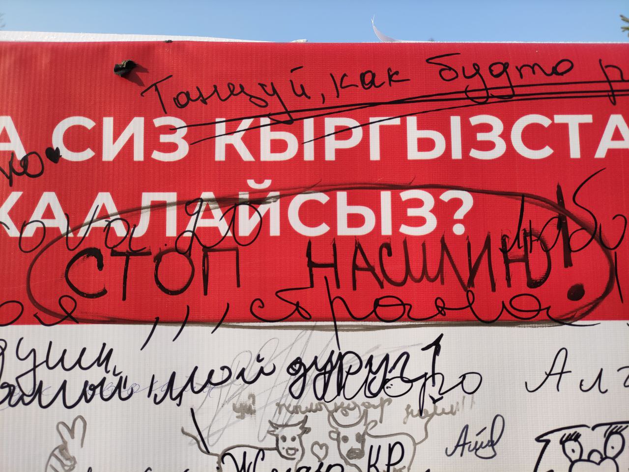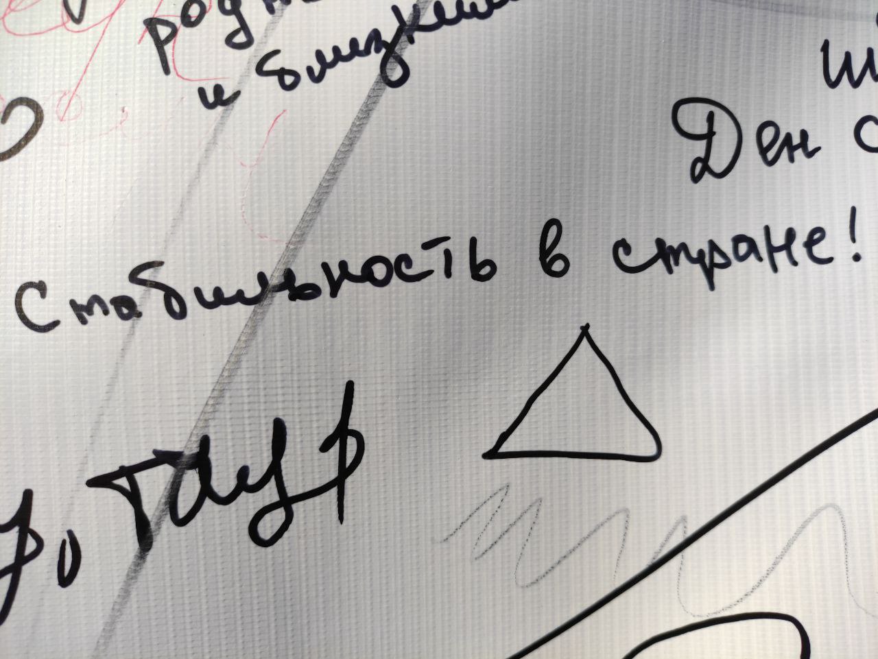 На доске пожеланий горожане упомянули имена некоторых политиков. Пожелали успехов главе ГКНБ Камчыбеку Ташиеву и мудрости правительству. А кто-то написал, что хочет нормального президента.