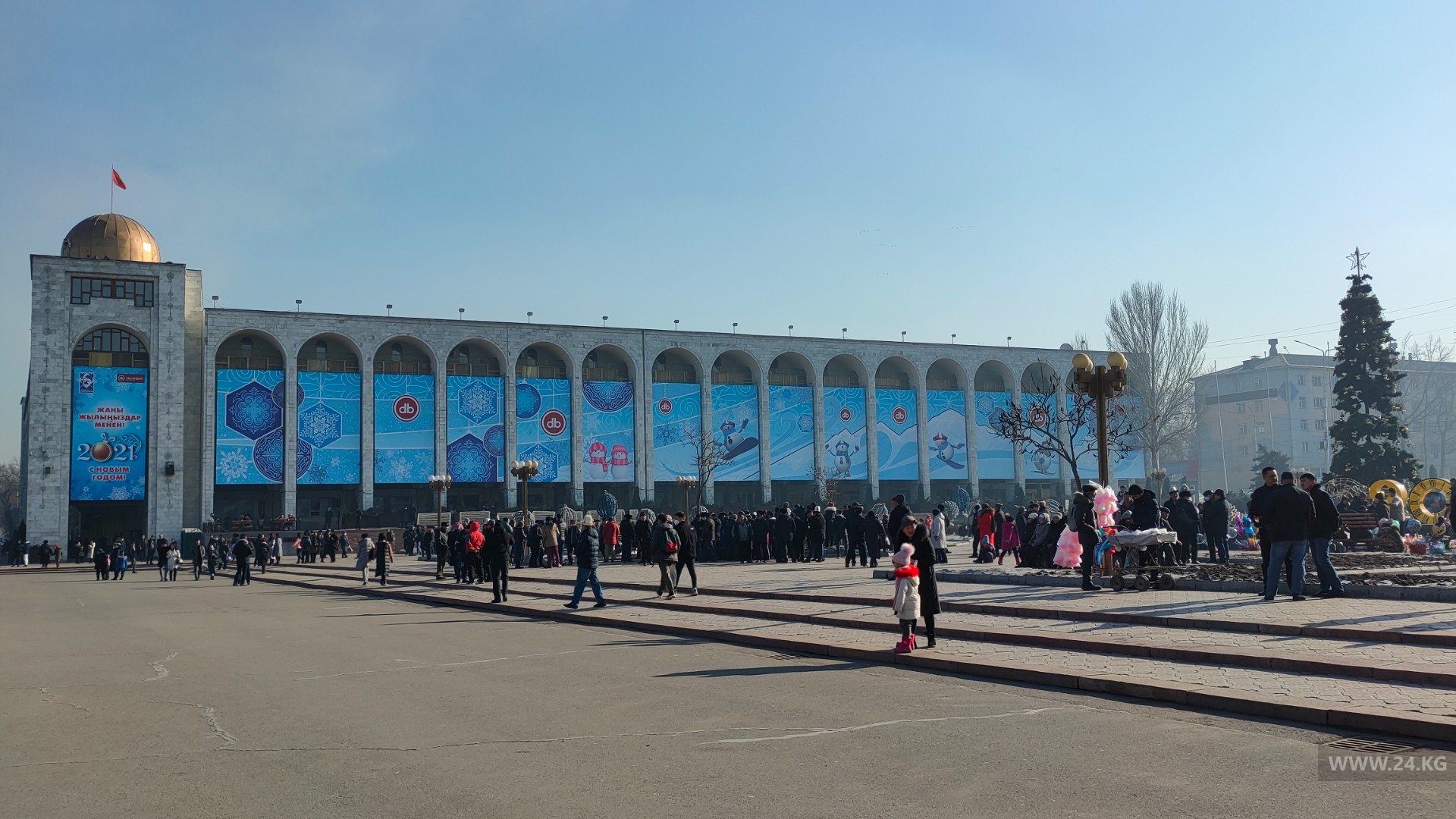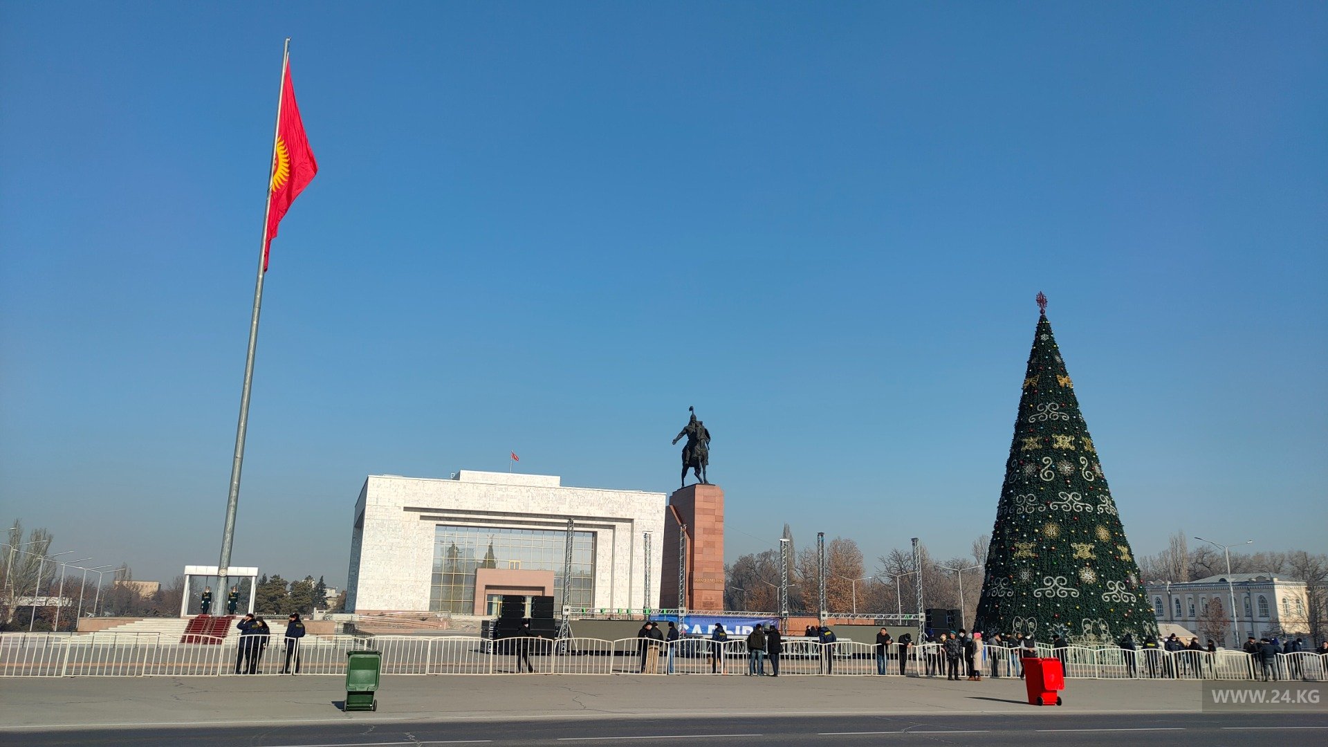 В Бишкеке на центральной площади собралось около 500 человек. Сегодня здесь пройдет концерт в честь победы Садыра Жапарова на президентских выборах.