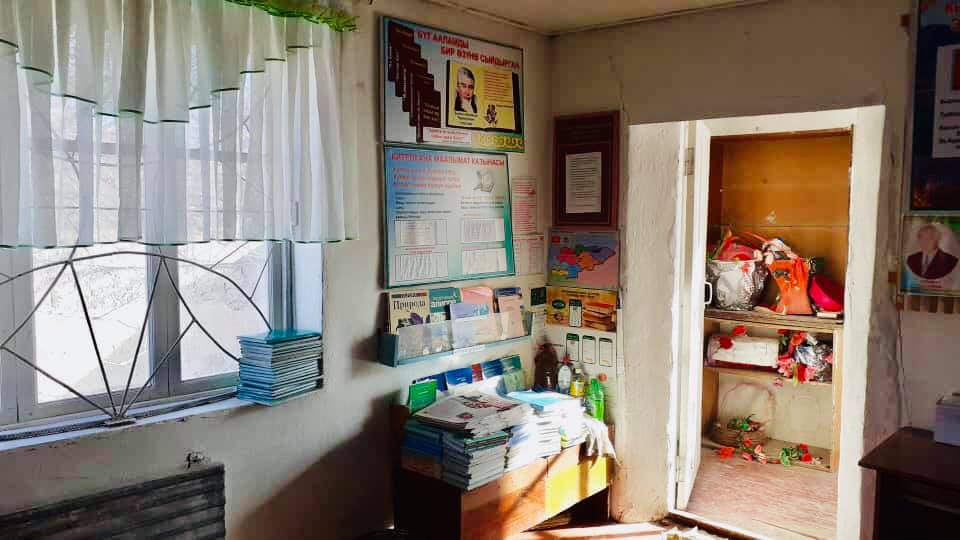 «Это библиотека школы, расположенной в селе Кызыл-Бель Баткенского района. Ее состояние и без слов видно. Окна разбиты, здание находится на грани краха. В зимнюю стужу здесь невозможно работать. Но, несмотря на это, моя мама на протяжении 40 лет продолжает работать в этом месте за копейки», — написал Алмаз Арапов, основатель академии в Кыргызстане, помогающий поступить в заграничные вузы.