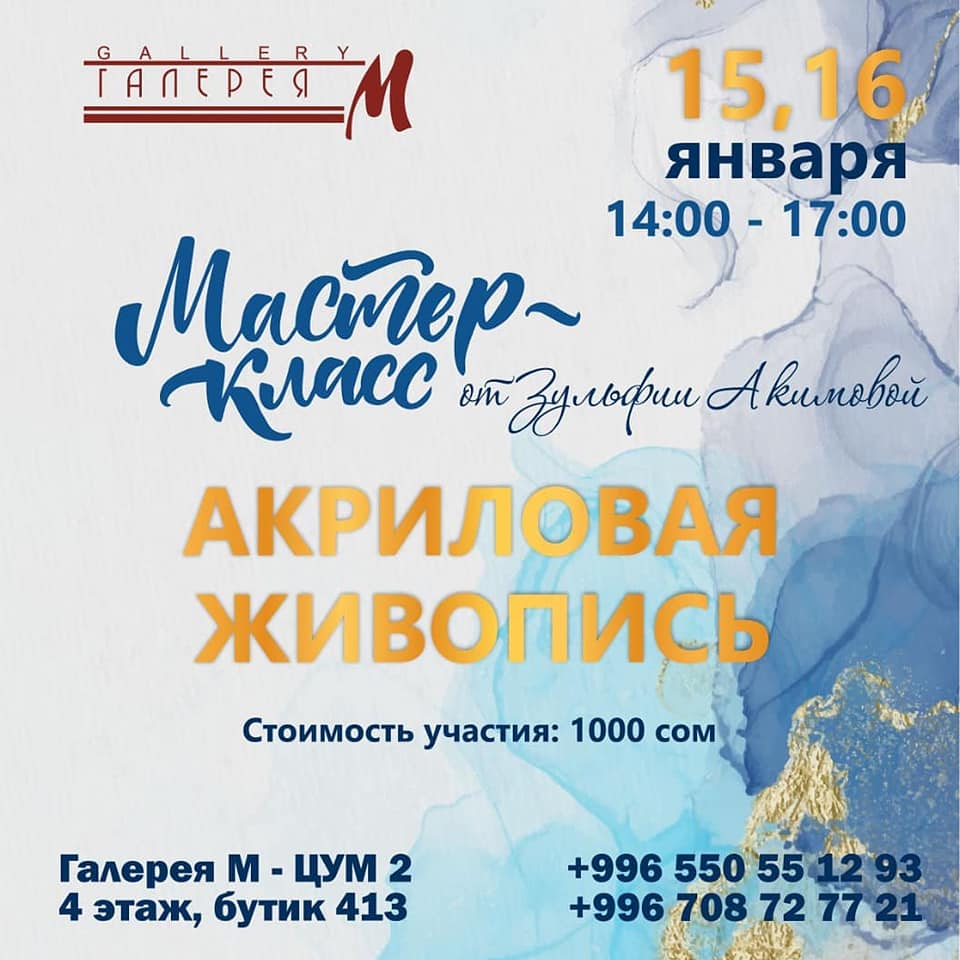 «Галерея М» (на проспекте Манаса, ЦУМ-2), 10.00-19.00.