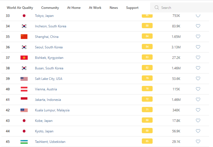 В рейтинге крупнейших городов мира по качеству воздуха World Air Quality Бишкек опустился на 37-е место.