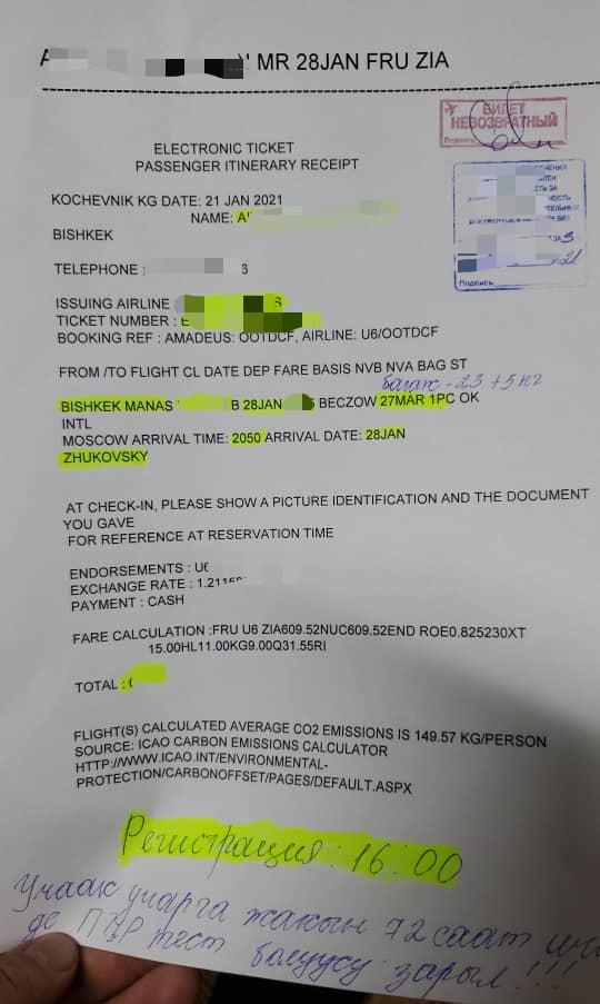 Отметим, что в связи с пандемией коронавируса стоимость перелета из Кыргызстана в города России значительно увеличилась. Согласно требованиям российской стороны, кыргызстанцы должны иметь отрицательный результат ПЦР-теста на коронавирус, сделанного не ранее чем за три дня (72 часа) до прибытия.