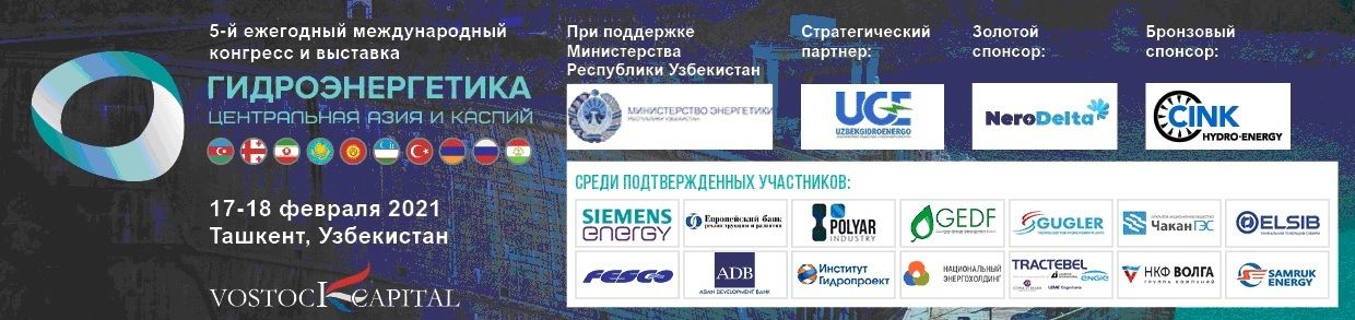Продолжается регистрация на V международный конгресс и выставку «Гидроэнергетика Центральная Азия и Каспий», которые пройдут 17-18 февраля 2021 года в Ташкенте (Узбекистан).