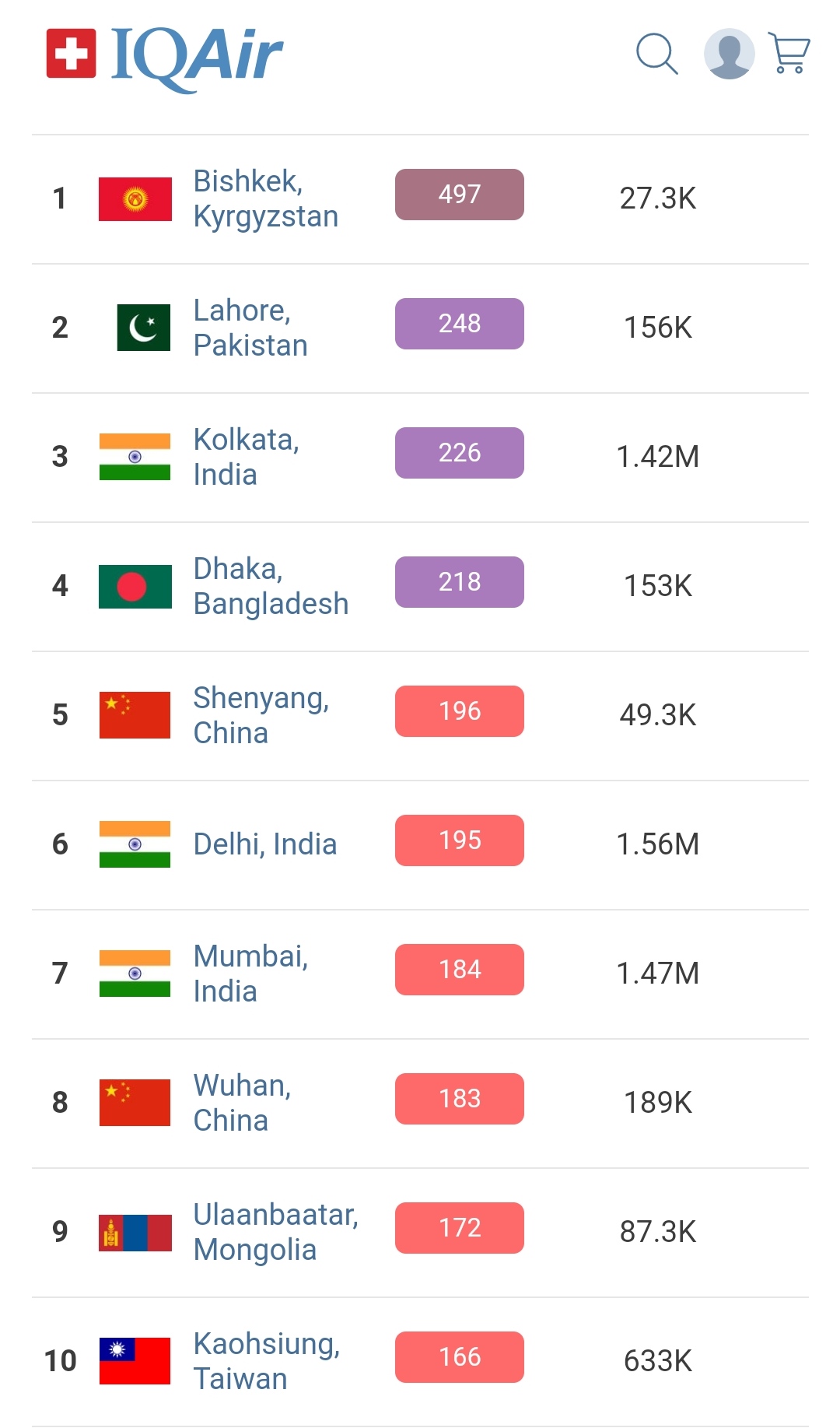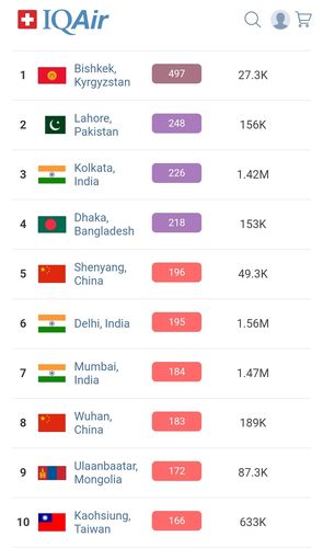 В 8.30 статус города отмечен как «опасный» (hazardous). Индекс качества воздуха, по данным сайта, составляет 497 (AQI).