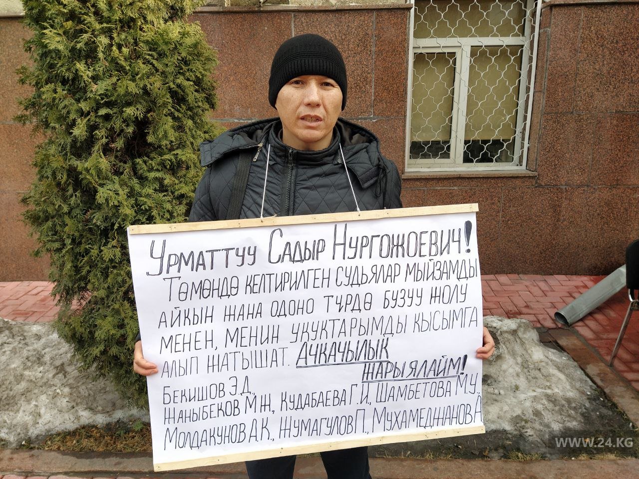 Фото 24-kg.com. В Бишкеке юрист вышел на одиночный пикет против судебного произвола