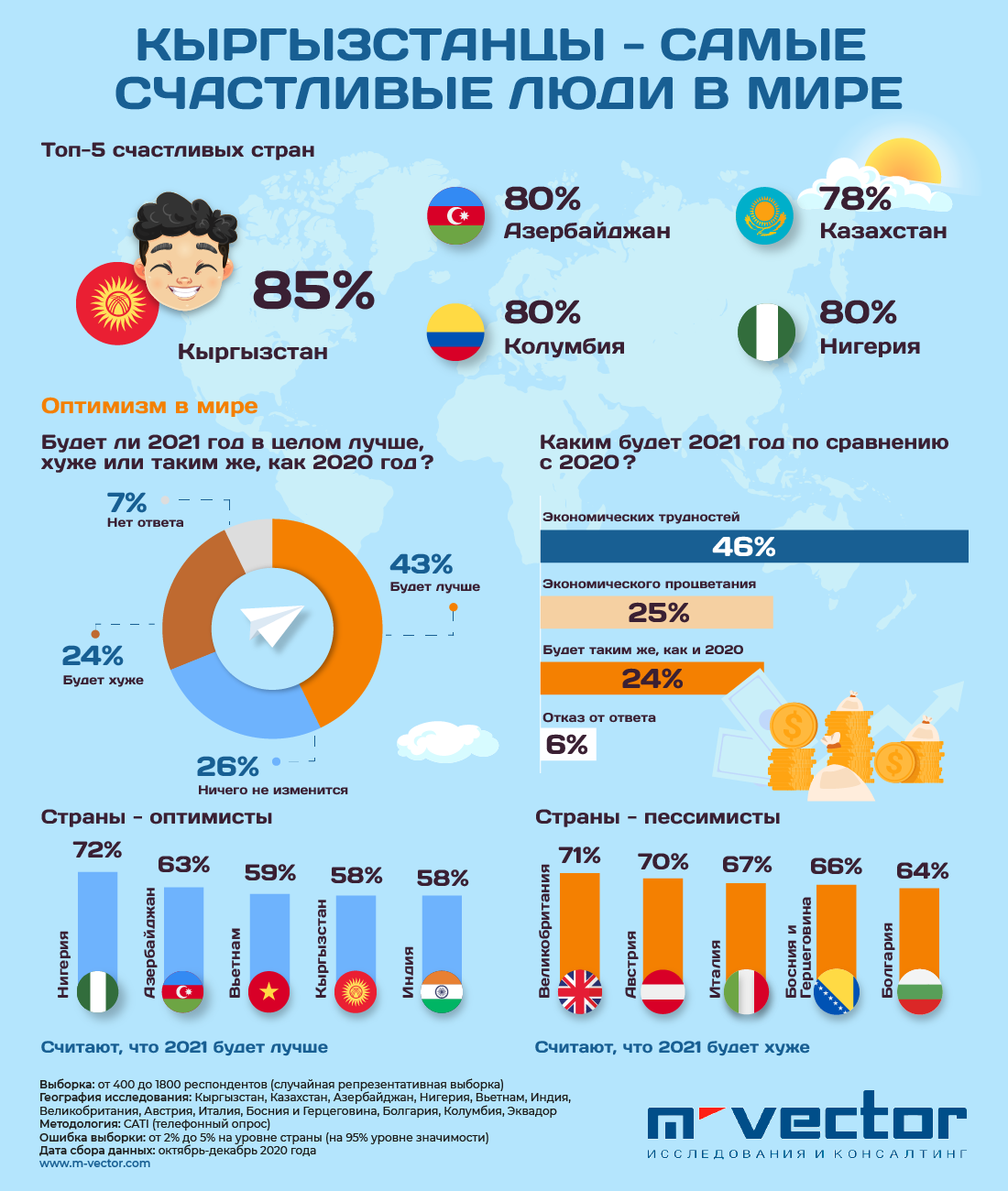 Данные собрали в рамках Voice of the people, известного международного опроса, который ежегодно реализуют все члены Gallup International Association. Компания M-Vector представляет Кыргызстан в этой ассоциации.