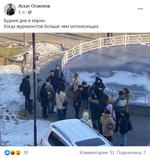 Фото скриншот из Facebook. Публикация Асхата Осмонова