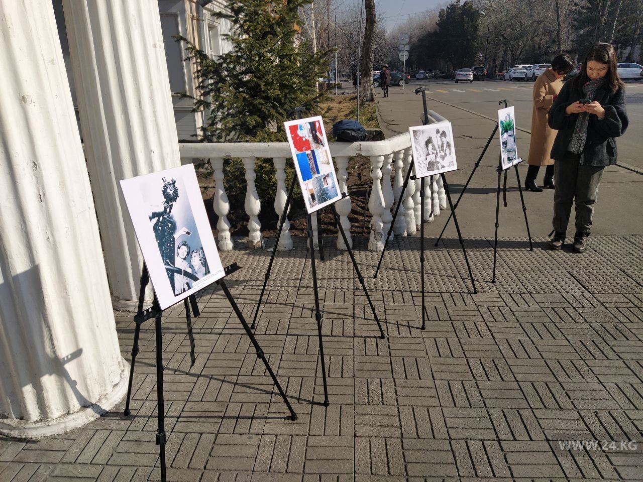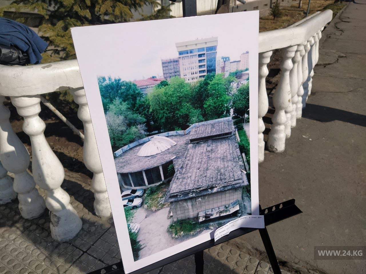 У двери они установили импровизированные мольберты с фотографиями Бишкекского планетария из разных эпох — от времен, когда он работал, до сегодняшних дней.