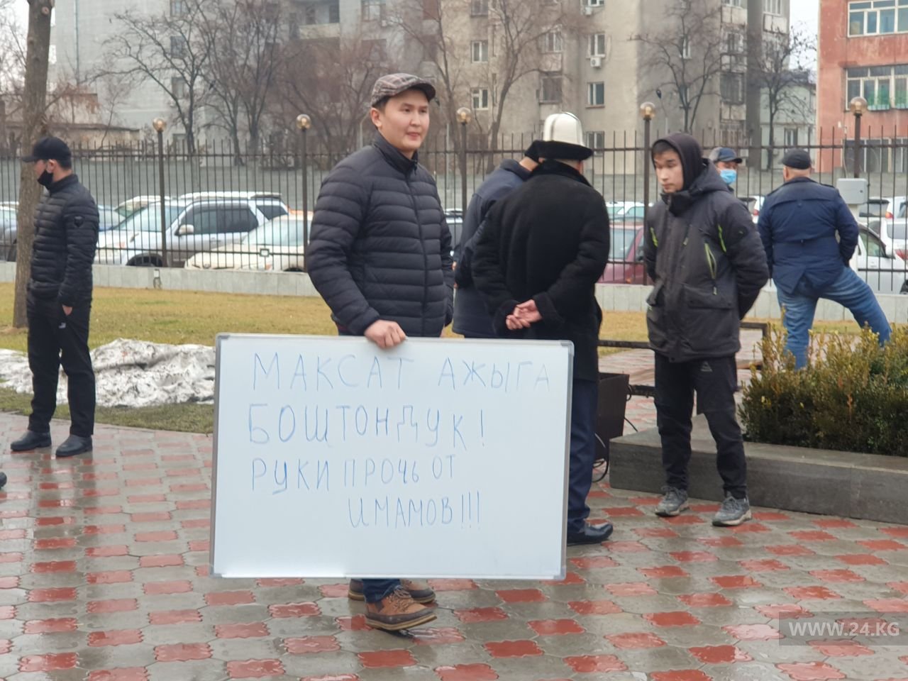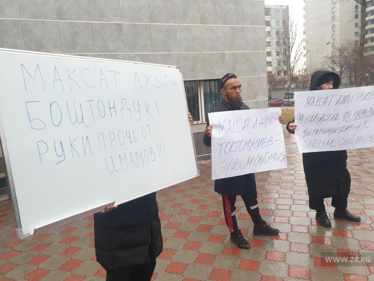 В Бишкеке на территории Первомайского районного суда проходит митинг сторонников экс-муфтия Максата ажы Токтомушева.