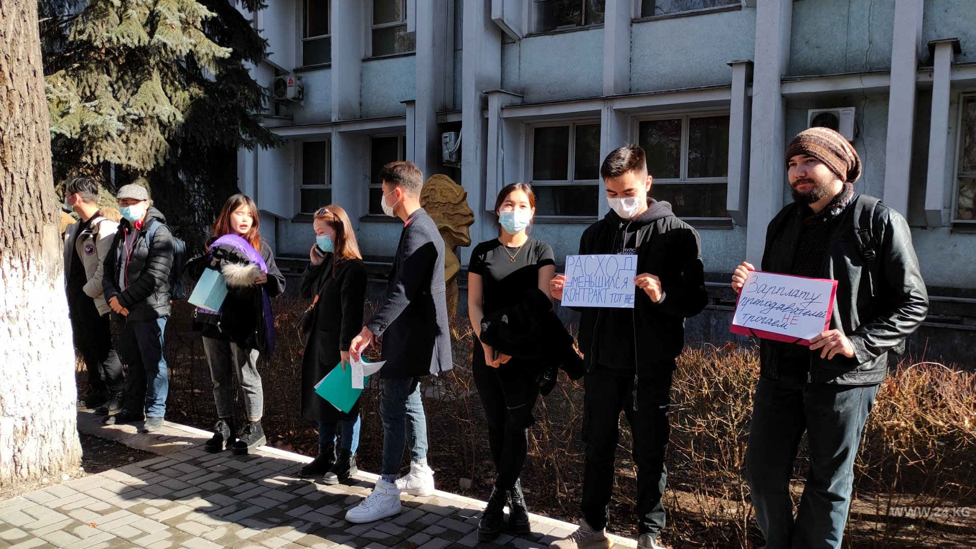 Примерно 15 человек собрались на акцию с требованиями к чиновникам снизить суммы контракта за обучение во время пандемии коронавируса.
