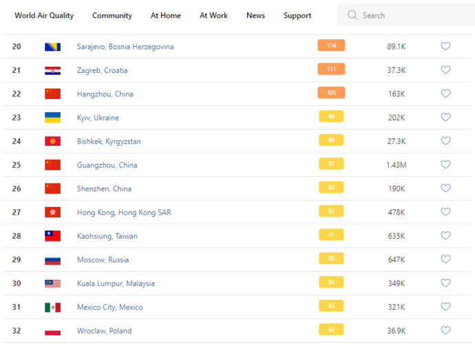 В 19.30 статус города отмечен как «умеренный». Индекс качества воздуха, по данным сайта, составляет 98 (AQI).