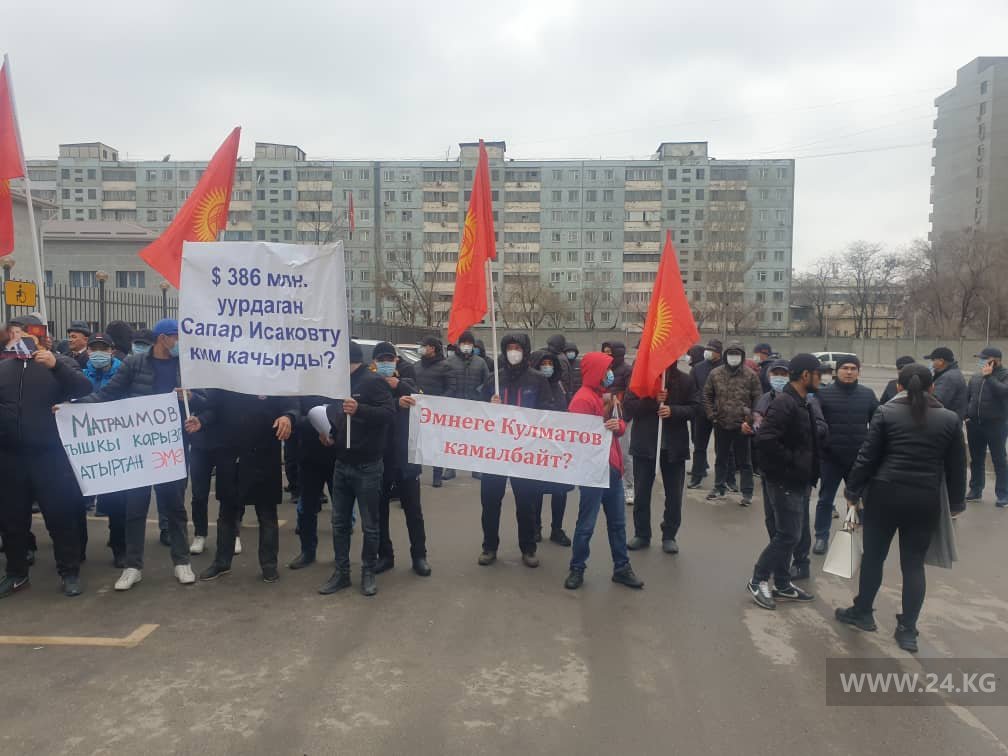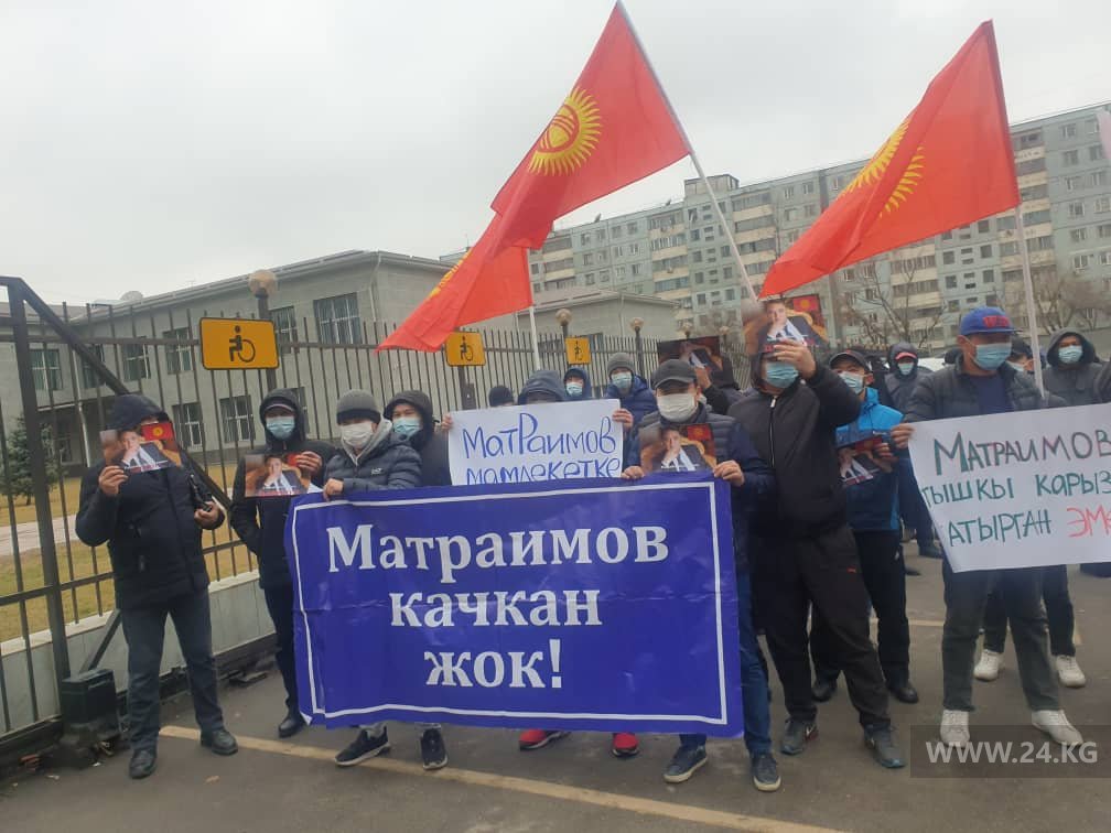 В Бишкеке около здания Первомайского районного суда проходит митинг сторонников экс-замглавы таможни Райымбека Матраимова.