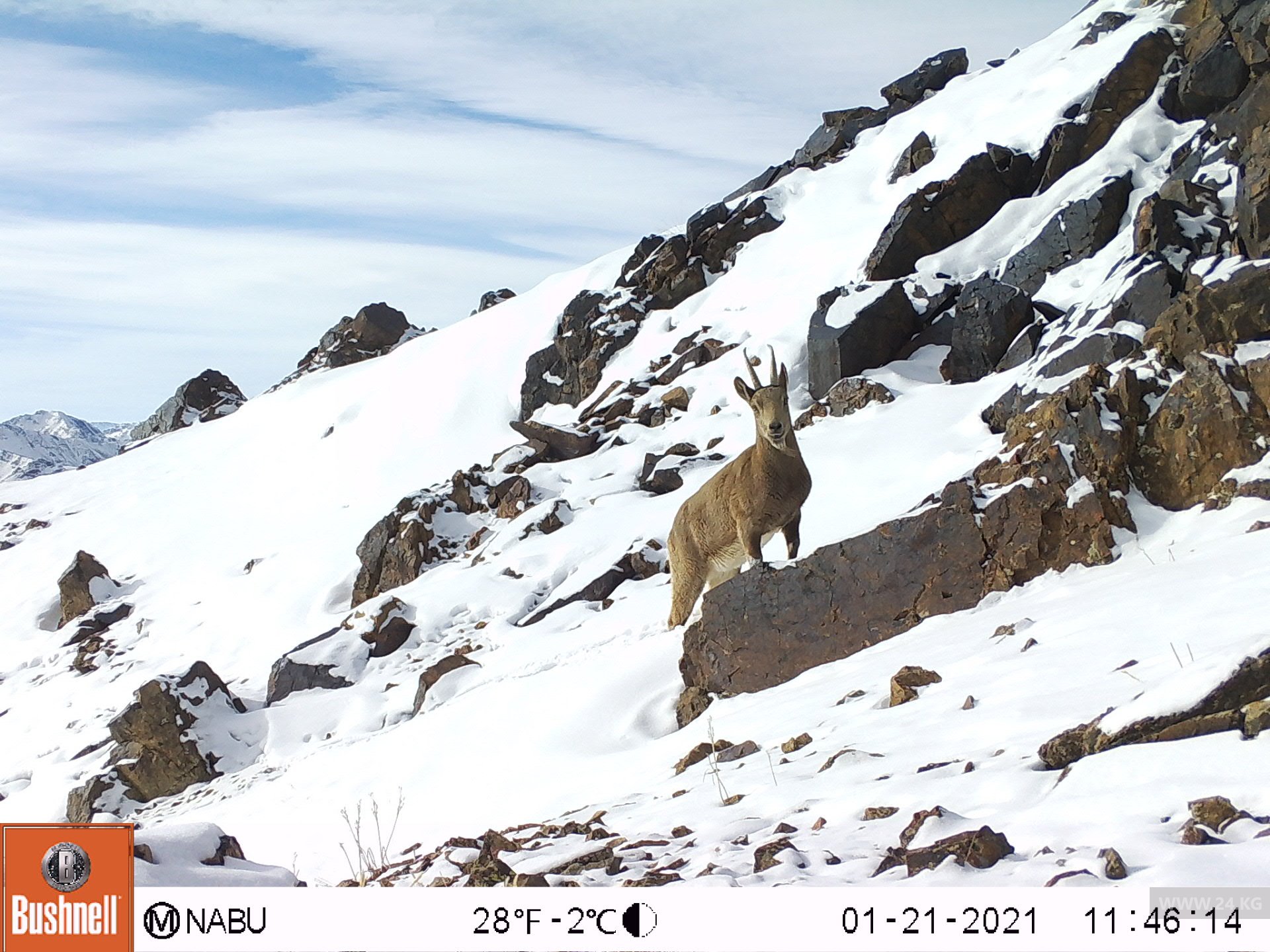 «Специалистами по мониторингу филиала было установлено шесть фотоловушек в долине Каракол в Таласской области на высоте 3 тысячи 600 метров над уровнем моря. На записи фотоловушек, простоявших с 16 декабря прошлого года по 18 февраля текущего, попали горные козлы, зайцы и улар», — сообщила она.